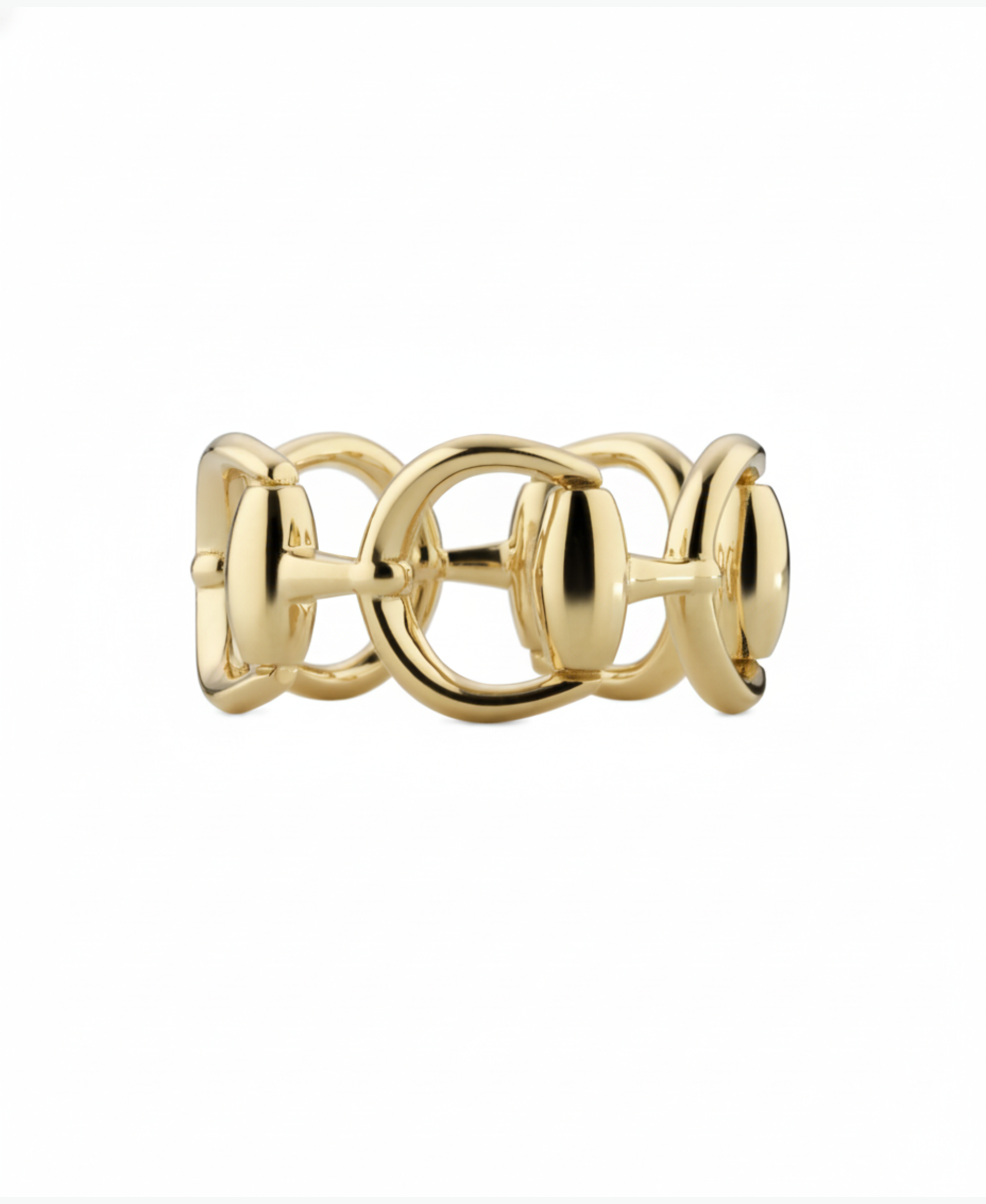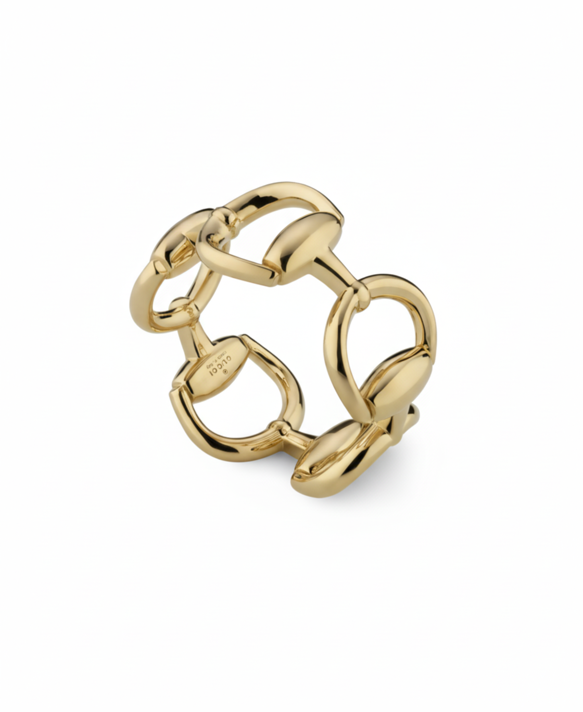 Este anillo esencial es un emblema de la moda. Basada en el histórico motivo Horsebit, esta colección rinde homenaje al legado ecuestre de Gucci con piezas elegantes, reconocibles y atemporales. Una obra de arte en oro. La elección ideal para un regalo inolvidable o para un manifiesto de estilo personal.