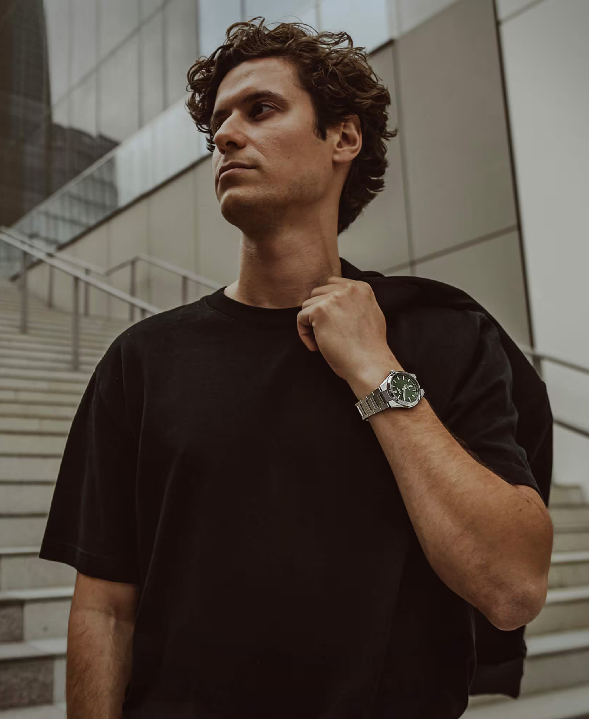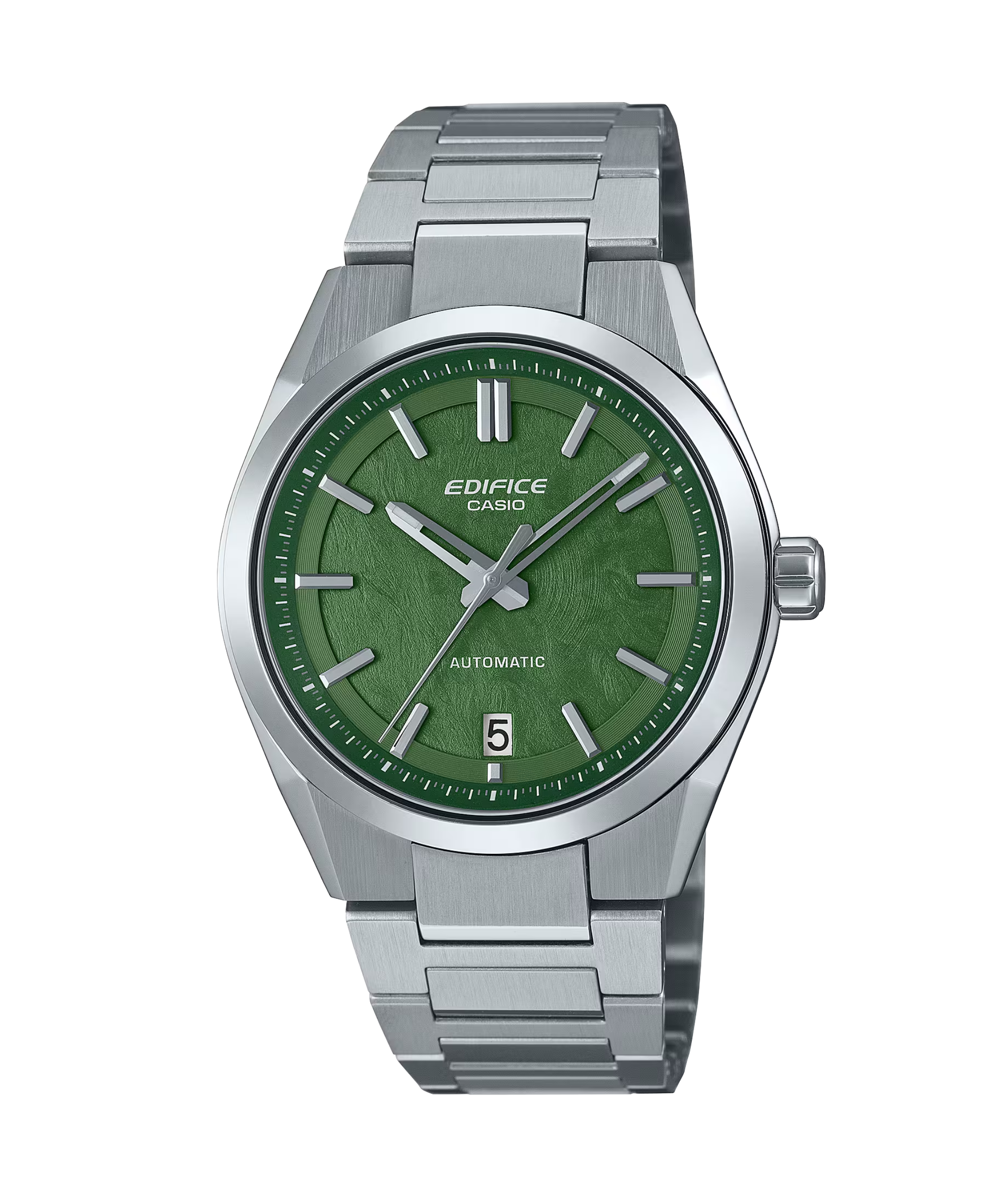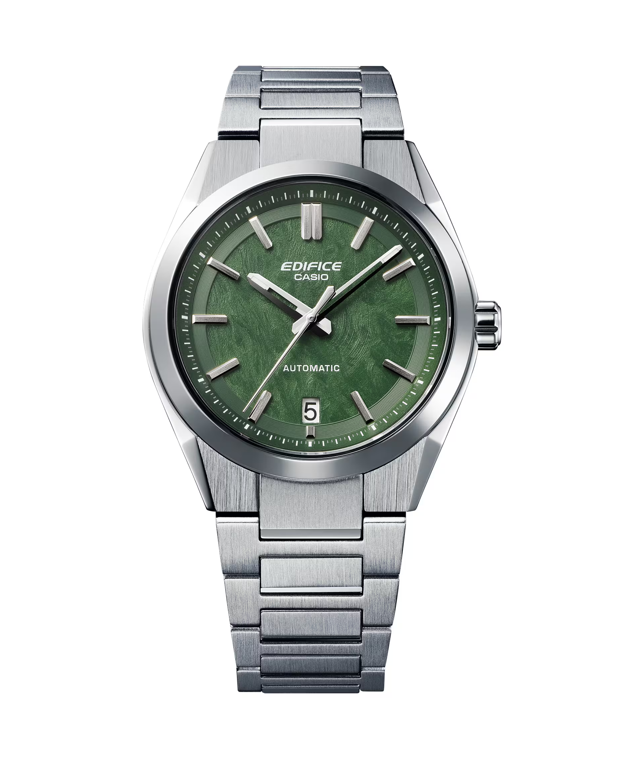Edifice Automatico es un reloj que combina la elegancia de la línea deportiva de Edifice con una estética de "reloj de buceo" muy marcada, destacando por su esfera verde vibrante y su construcción robusta en acero