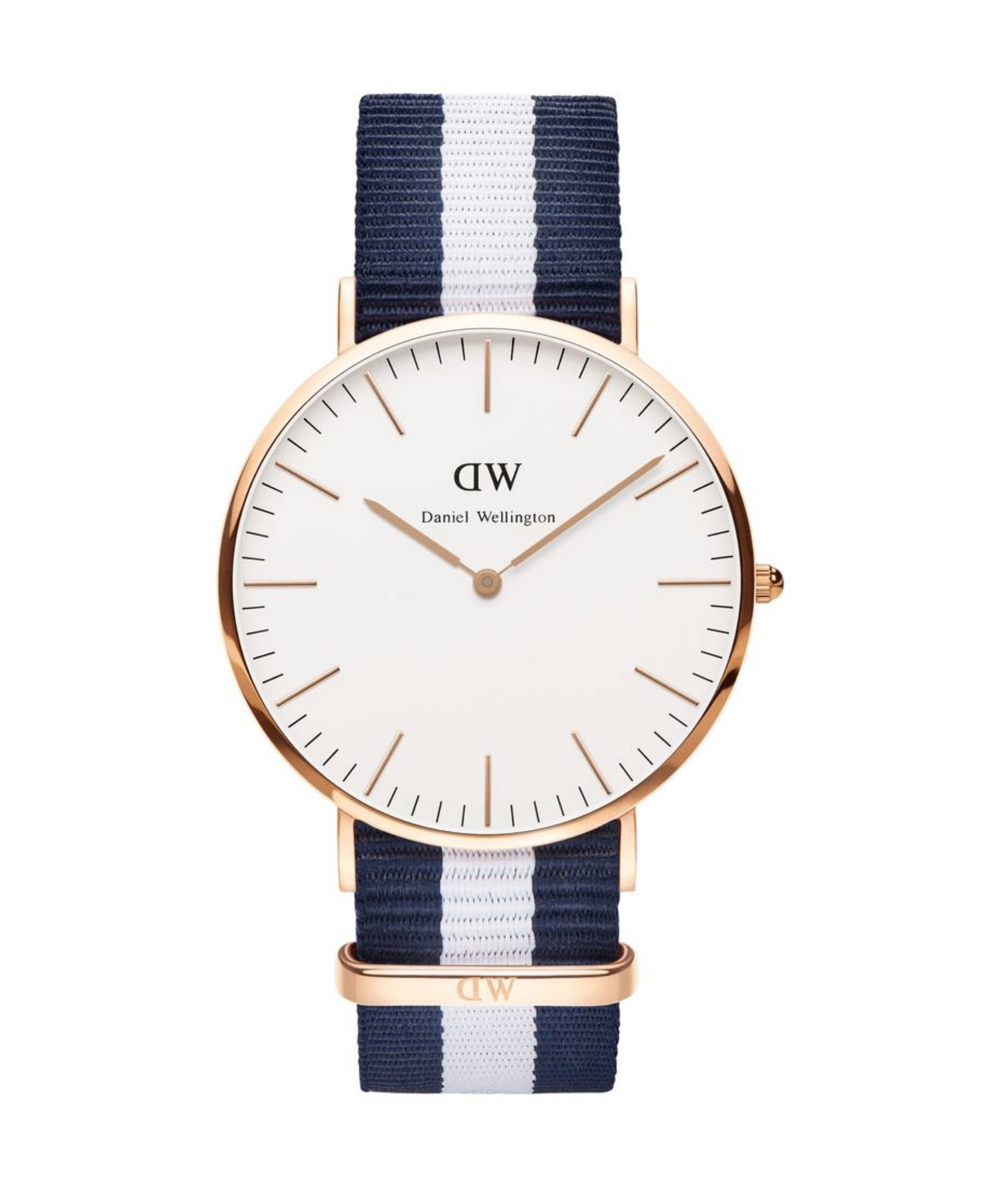 Captura la esencia náutica y veraniega. Cuenta con una caja ultraplana en oro rosa (6 mm) y una esfera blanca. Su elemento más distintivo es la correa NATO en azul y blanco, diseñada para un estilo fresco y elegante. Es un modelo ligero, con movimiento de cuarzo japonés, ideal para un look casual sofisticado.