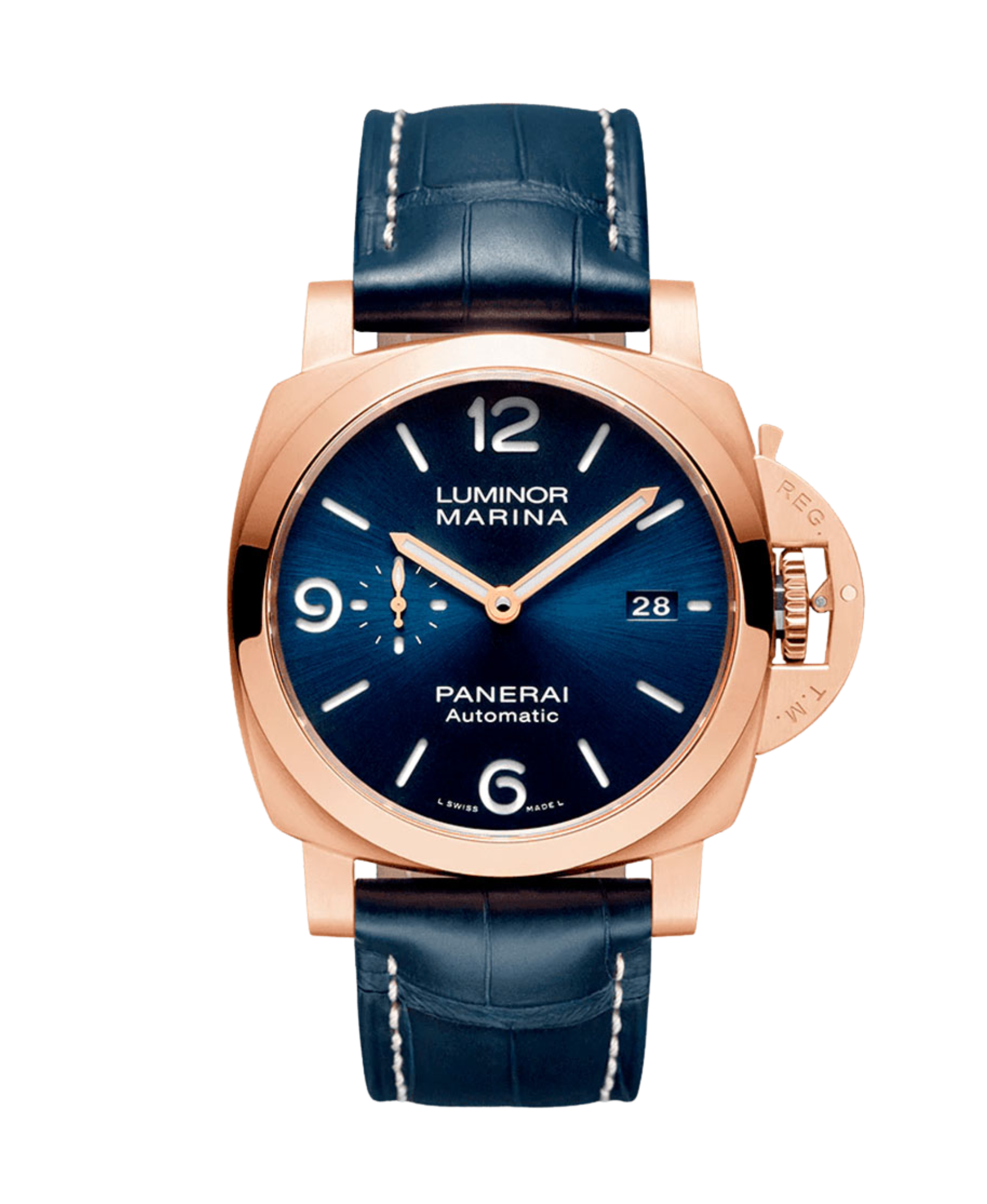 Un reloj automático con caja de 44 mm en la exclusiva aleación Goldtech™, esfera azul satiné soleil, correa de aligátor azul y funciones de horas, minutos, pequeño segundero y fecha. Monta el calibre interno P.9010 con reserva de marcha de 72 horas. Diseño elegante y distintivo que combina sofisticación y presencia.