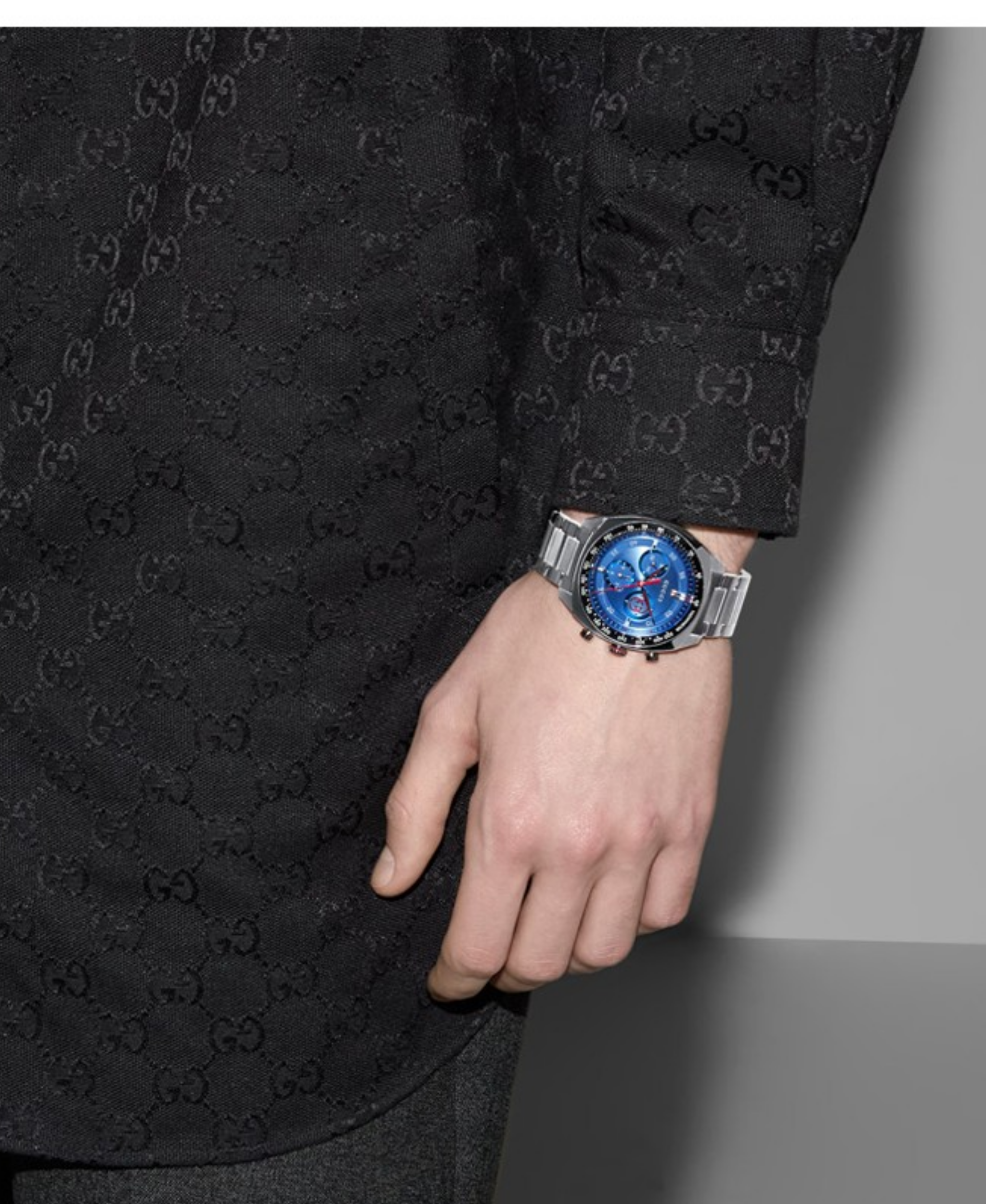 Impulsado por un movimiento de cuarzo con función de cronógrafo, el nuevo reloj Gucci Interlocking combina los códigos históricos de la Casa con un toque contemporáneo. Su caja de 41 mm presenta una esfera azul con bisel de cerámica negra e indicador taquimétrico. Con un brazalete de acero inoxidable, el accesorio luce el emblemático logotipo de la G Interlocking en un pequeño segundero.