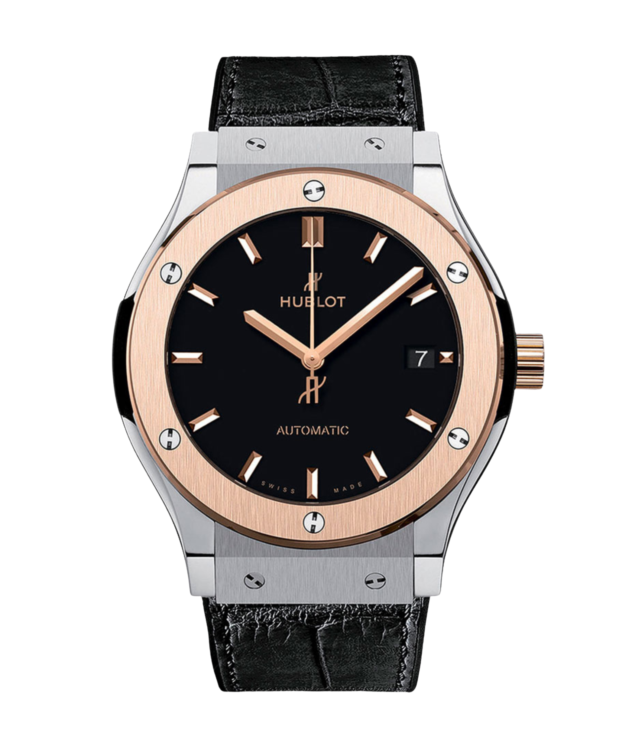 Hublto Classic Fusion encarna la "Fusión" de lujo. Su caja de Titanio de 45 mm contrasta audazmente con el bisel de exclusivo King Gold. Esta pieza combina la ligereza deportiva con la opulencia de la alta relojería. Un diseño elegante y atemporal con una presencia inconfundible.