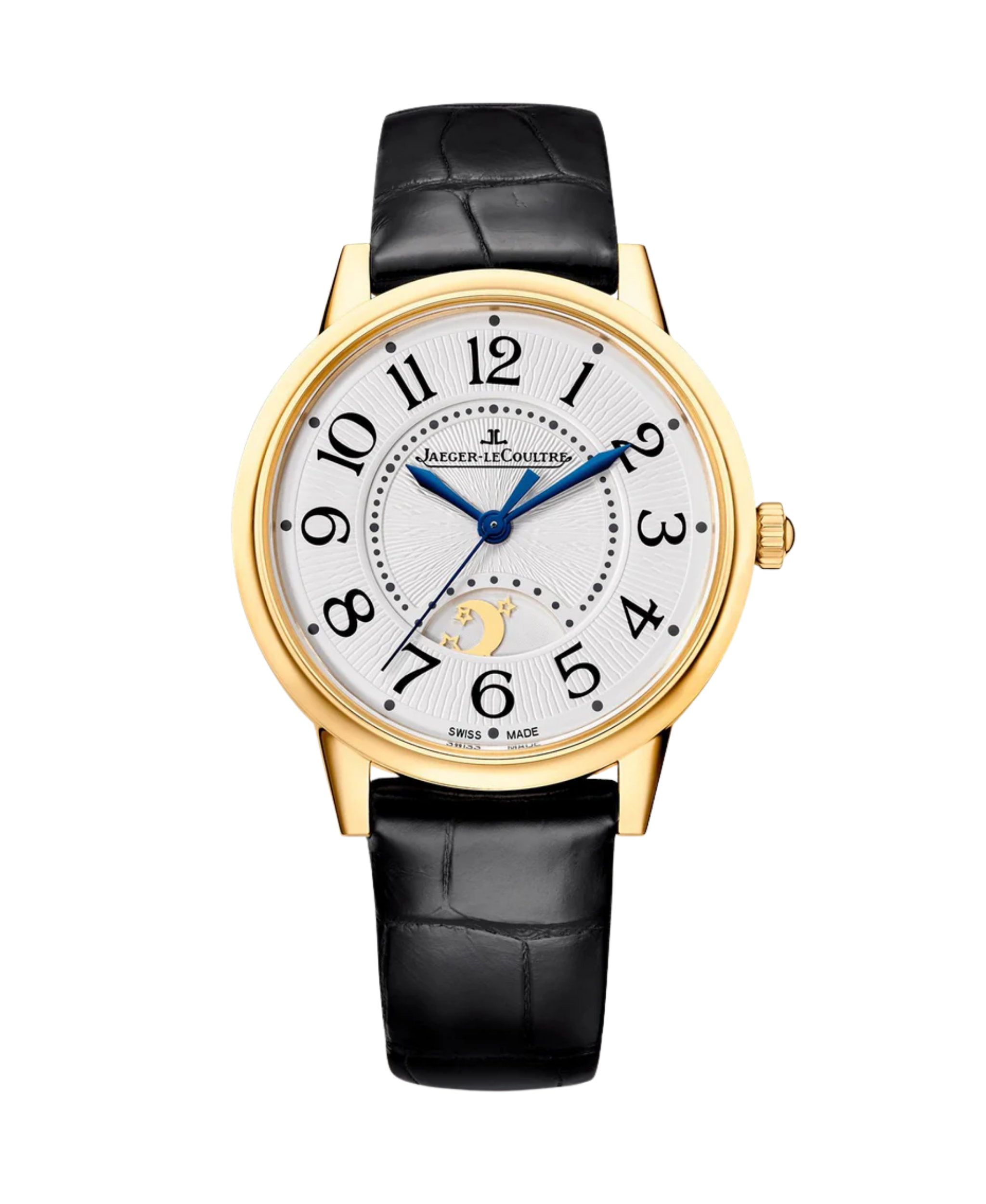 Rendez-Vous Night & Day en oro amarillo es una pieza de una sofisticación sublime, diseñada para celebrar la feminidad a través de la alta relojería. Este modelo destaca por su luminosa caja de 34 mm fabricada en oro amarillo de 18 quilates, un material que le confiere una distinción clásica y un brillo imperecedero. Su esfera plateada, adornada con un delicado acabado guilloqueado, sirve de escenario para los icónicos números arábigos de la colección y las elegantes agujas azuladas. A las 6 horas, se sitúa la complicación que da nombre al modelo: un indicador de día y noche que muestra un sol y una luna dorados alternándose sobre el firmamento, aportando un toque poético y funcional al conjunto.