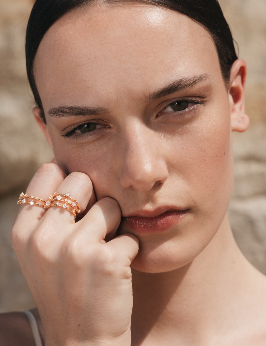 Las joyas de oro rosa destacan por su tonalidad suave y femenina, su elegancia contemporánea y su atemporalidad. Descubra una selección de anillos, pendientes, pulseras y collares de diseño artesanal —creaciones propias y de firmas de lujo— en oro rosa de 18 quilates liso o con diamantes naturales y piedras preciosas, pensadas para convertirse en reliquias familiares y perdurar para siempre.
