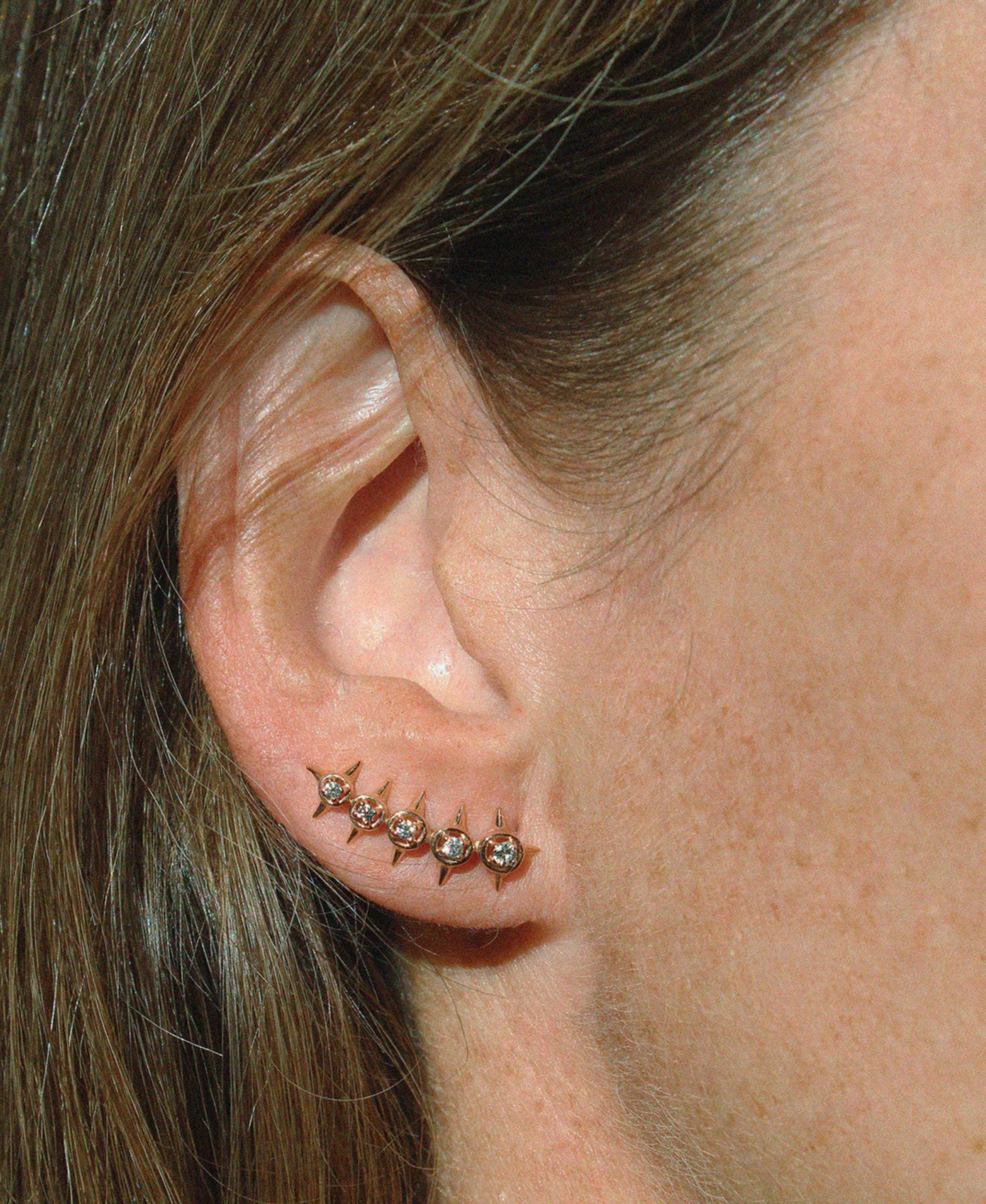 Alta joyería para definir tu estilo personal. Este pendiente individual Peak Palace Crawler M, elaborado en oro rosa de 18kts y diamantes (0,11 cts), es la pieza arquitectónica que envuelve tu oreja con una sofisticación vanguardista. Un *statement* de brillo y diseño.