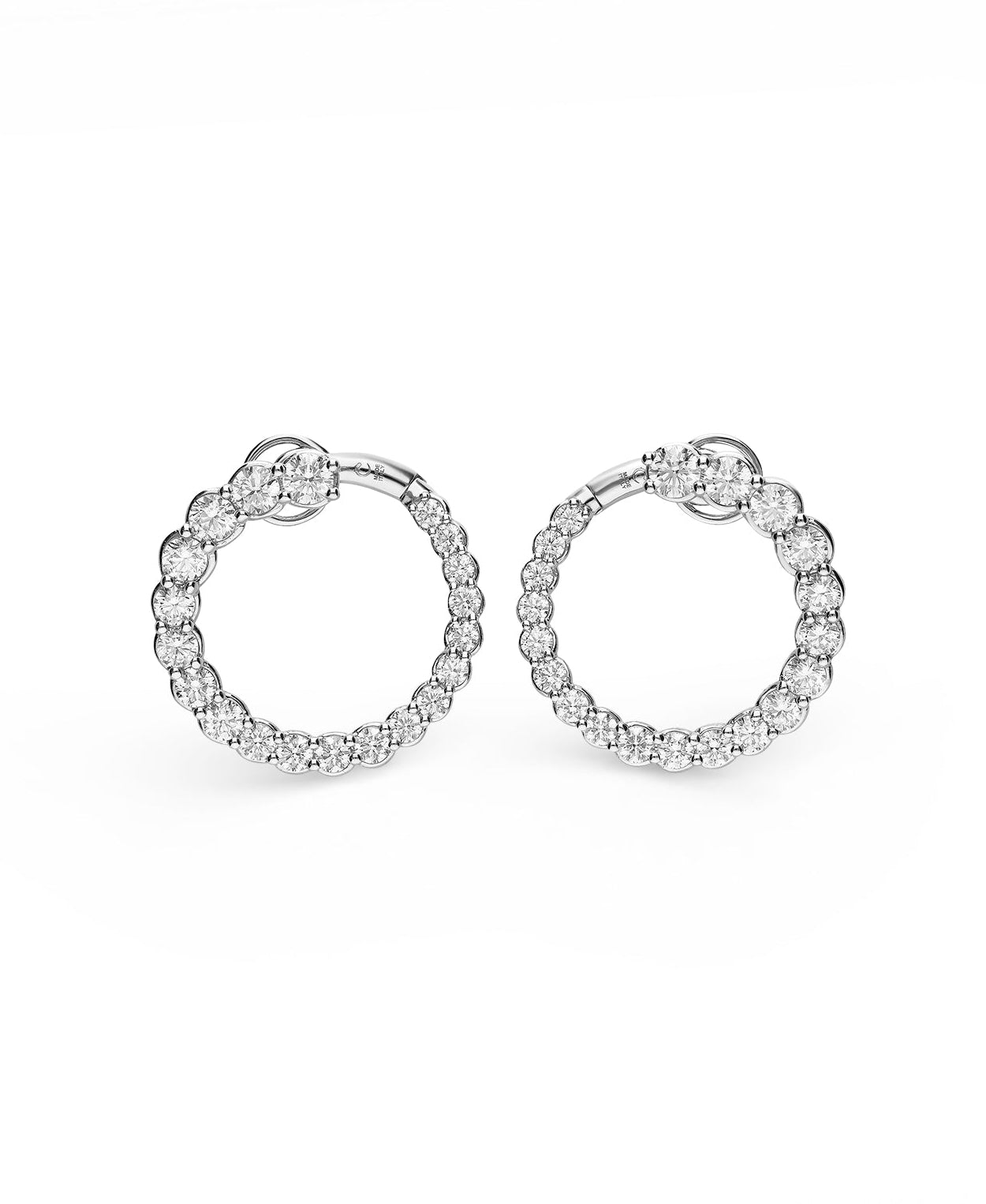 Pendientes grandes de aro abierto elaborados en oro blanco, engastados con diamantes en degradé que suman un total de 4,86 quilates. Su diseño aporta un brillo continuo y una presencia elegante, perfecta para elevar cualquier look.
