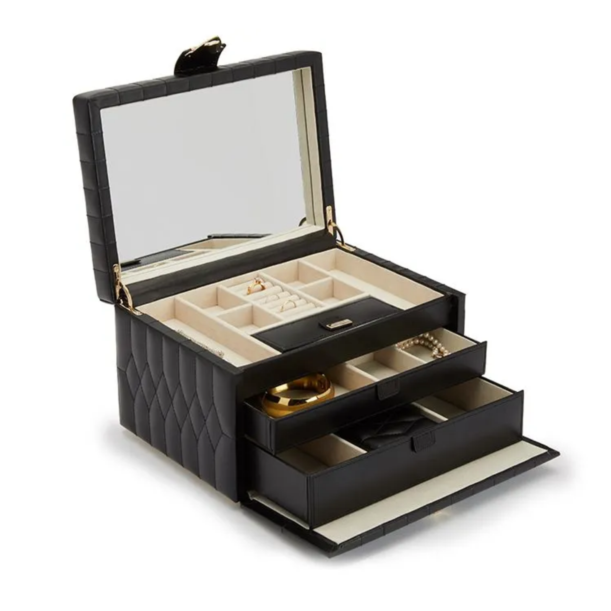 Joyeros diseñados con delicadeza para proteger, organizar y conservar cada joya, convirtiendo el gesto de guardarlas en un pequeño ritual. Materiales nobles, interiores cuidados y un diseño que realza las piezas que guardan.