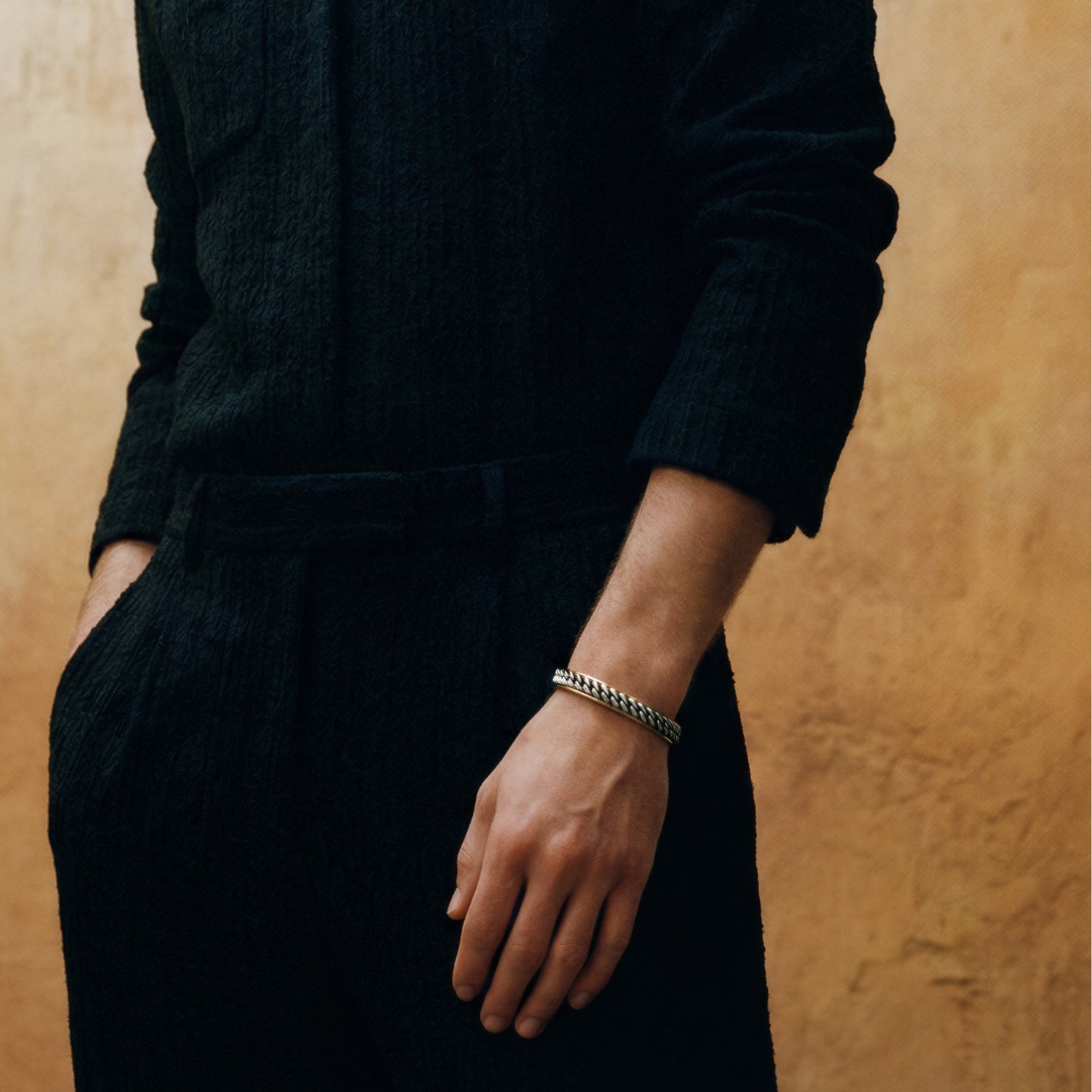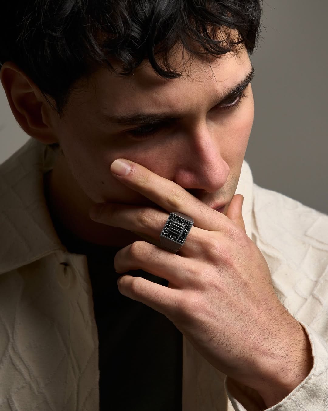 La colección de Marco Dal Maso destaca por su joyería contemporánea con personalidad donde la plata, las piedras y el cuero se combinan en diseños artesanales de inspiración italiana, creando anillos, collares, pulseras y pendientes de fuerte identidad estética.