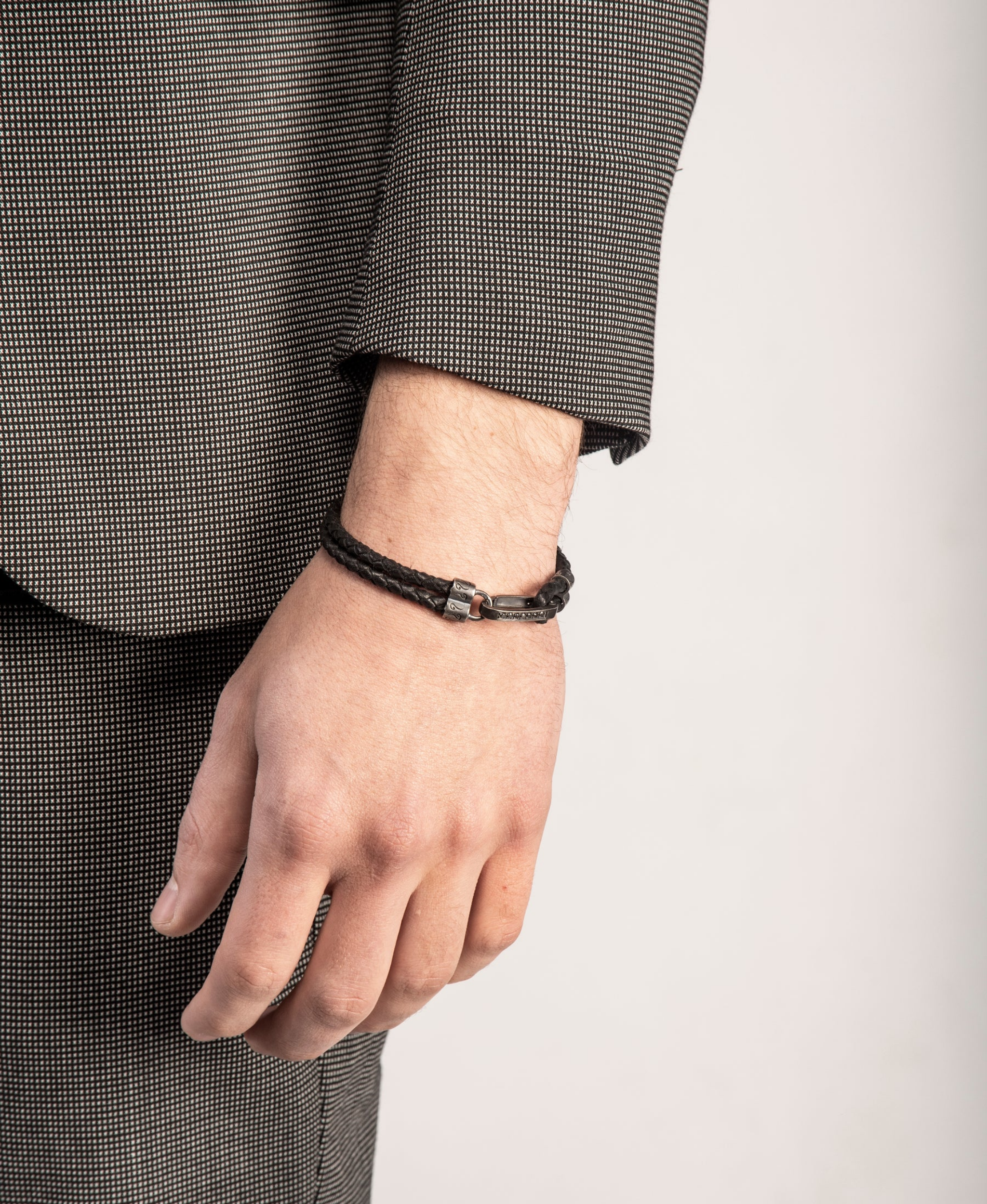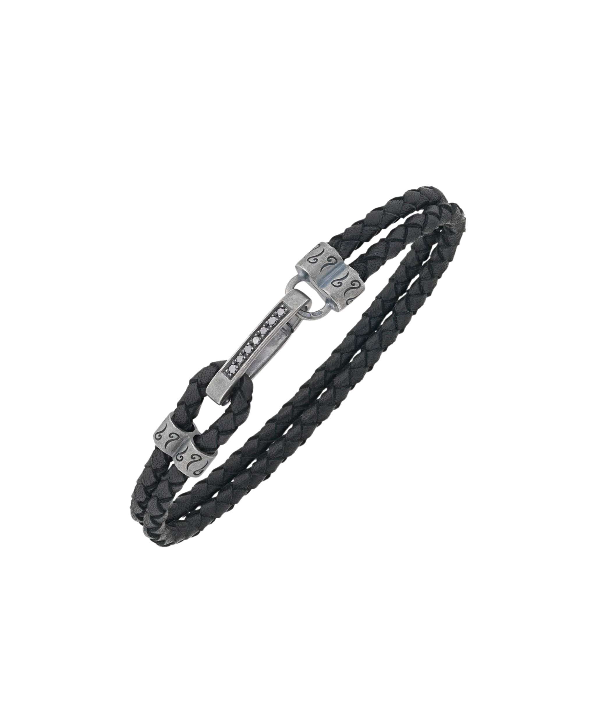 Pulsera Marco Dal Maso Lash ID Gemstone Clasp en Plata Oxidada, Diamantes Negros y Cuero | AGBR0132-01BVPN2