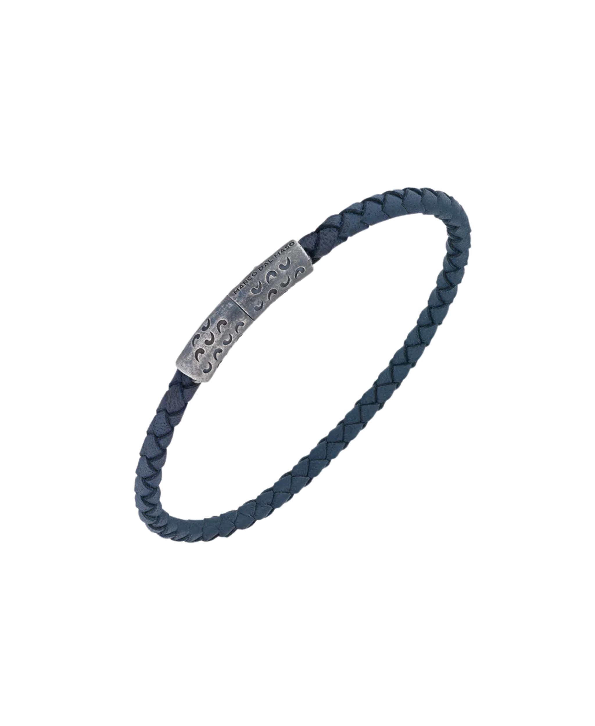Pulsera Marco Dal Maso Lash Slim con Cierre de Cilindro en Plata y Cuero Azul | AGBR34-01BVPB2