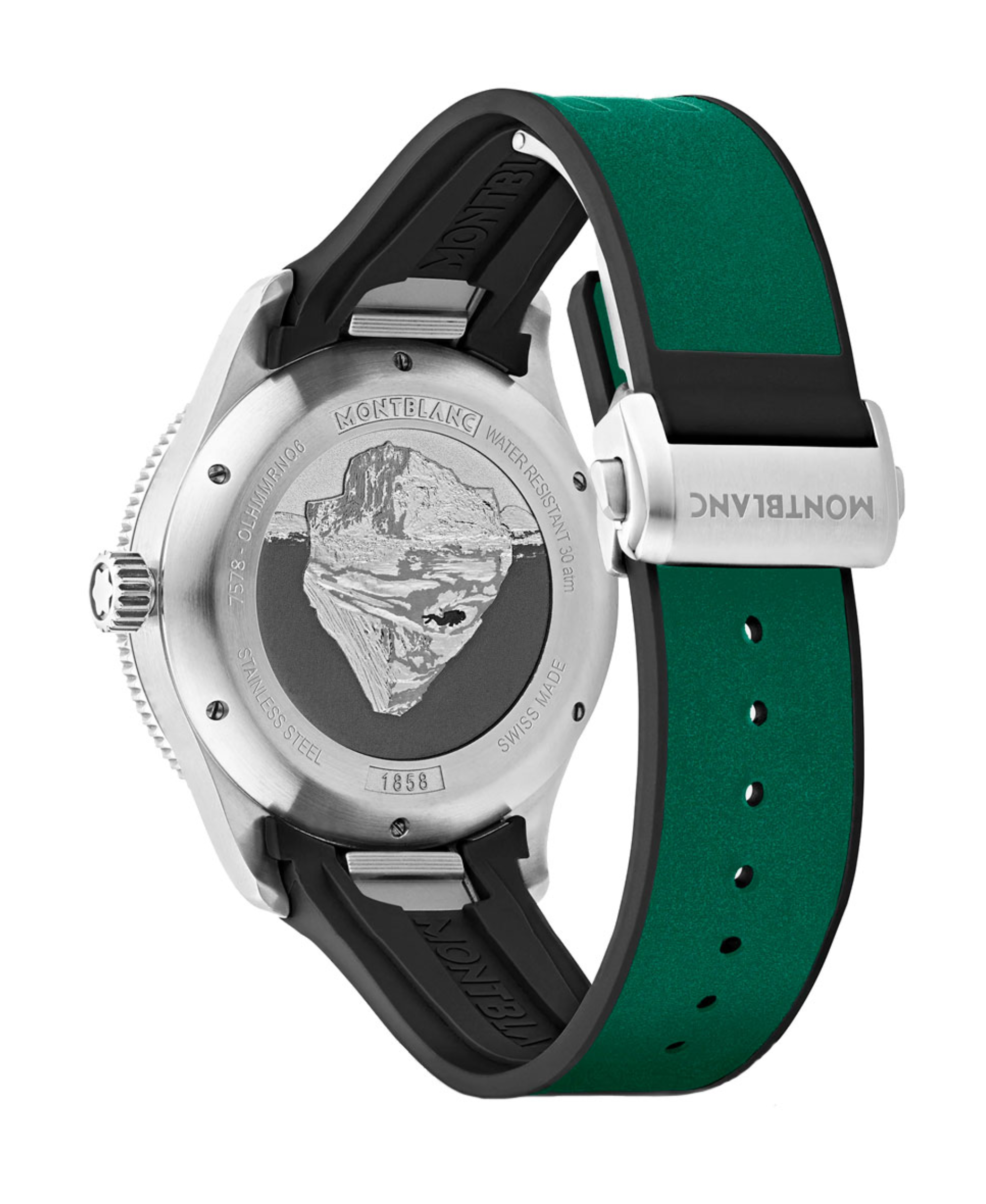 Montblanc 1858 Iced Sea Automatic Date es el primer reloj de buceo deportivo de la marca. Pertenece a la línea 1858, inspirada en la exploración de las cimas y los glaciares alpinos, específicamente en el Mer de Glace (Mar de Hielo) del macizo del Mont Blanc.