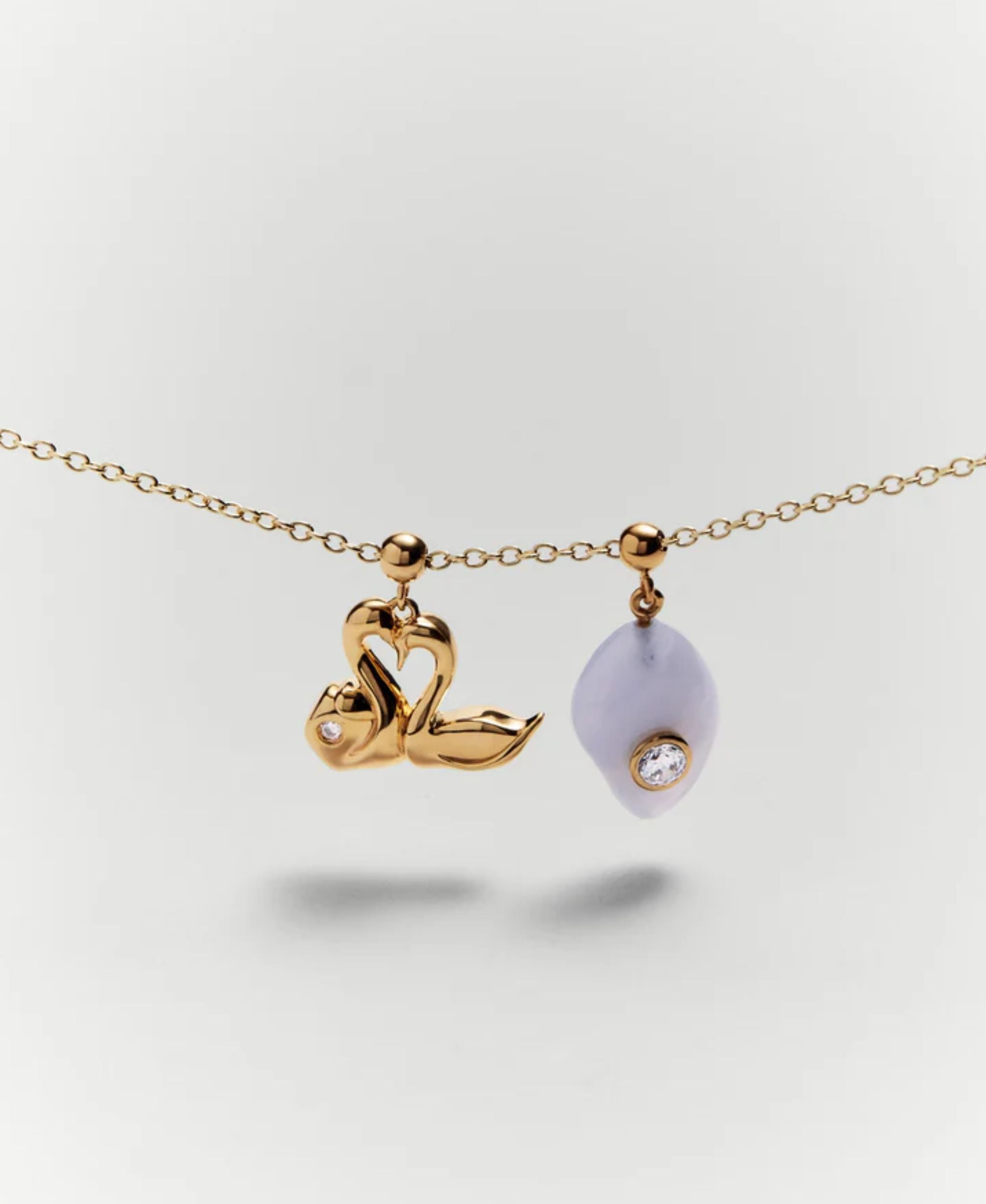 El charm "Cisnes Corazón" de PDPAOLA es una pieza de diseño poético que celebra el amor y la fidelidad. Este colgante presenta a dos cisnes entrelazados cuyas siluetas forman un corazón perfecto, reflejando una elegancia romántica y contemporánea. Elaborado en plata de ley 925 con un exquisito baño de oro de 18K, la joya se realza con el brillo de una circonita blanca engastada. Es un amuleto sofisticado y delicado, ideal para personalizar tus joyas con un símbolo de conexión eterna.