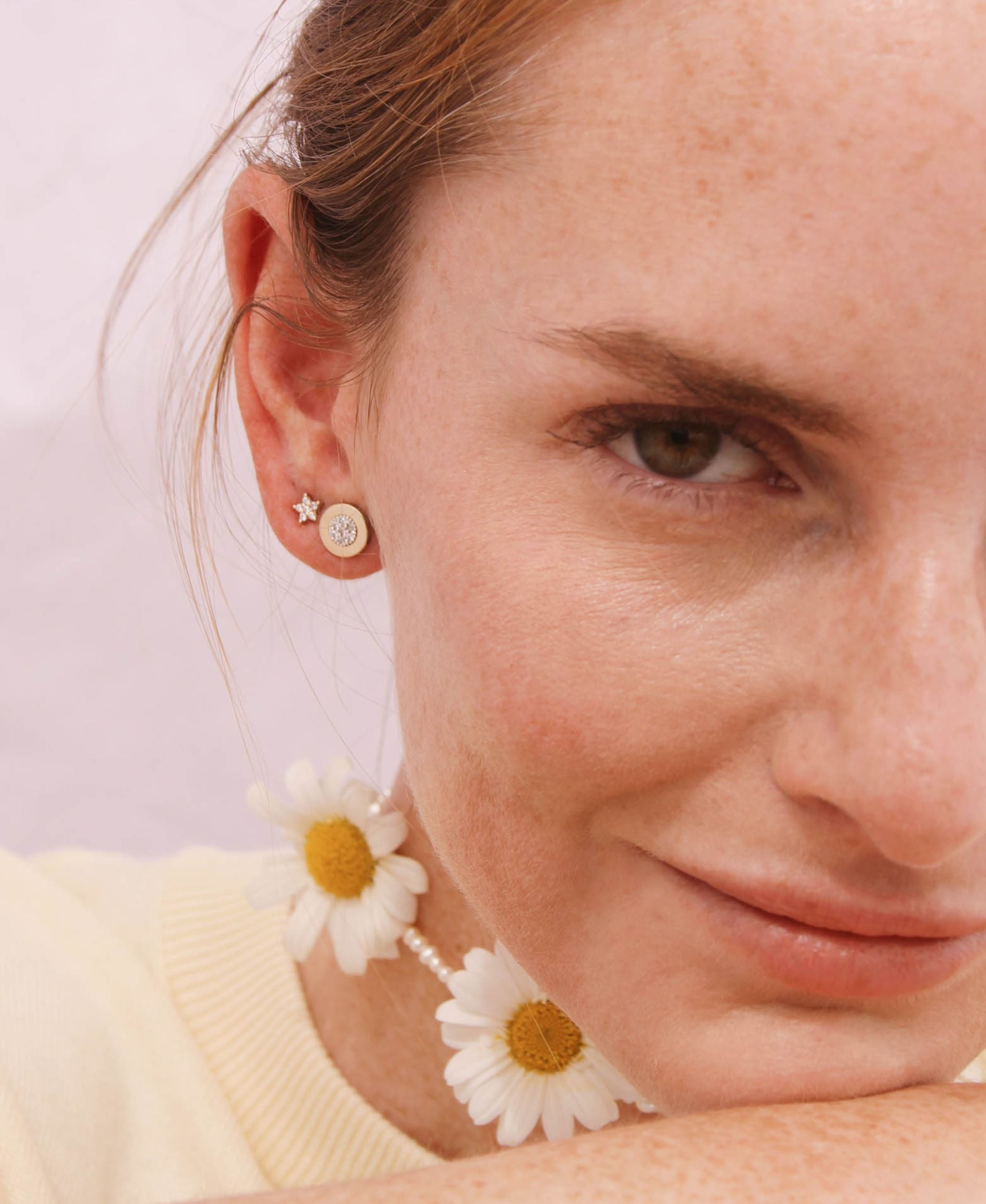 La sencillez elevada al lujo por Del Cerro. Estos pendientes tipo dormilona presentan un diseño circular con un cálido marco de oro que abraza un centro de plata cuajado de cristales blancos. Una pieza esencial, cómoda y luminosa que combina la maestría artesanal con un estilo atemporal, perfecta para iluminar el rostro en cualquier ocasión.
