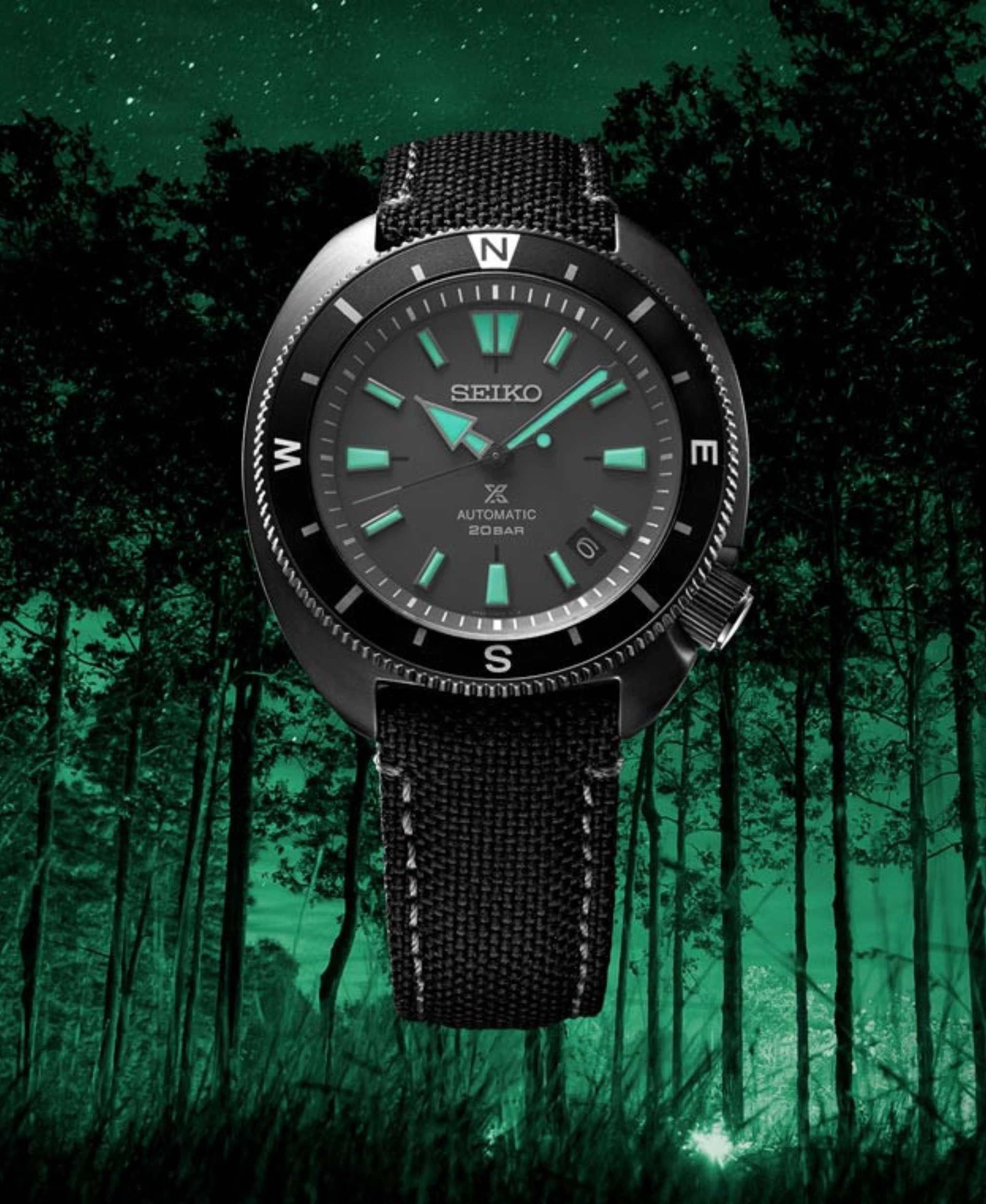 Diseñado bajo el concepto "Night Vision". Esta Edición Limitada reinterpreta la icónica caja "Tortuga" de la serie Land con una estética completamente oscura, inspirada en la visión nocturna de los exploradores. El producto destaca por su caja de acero inoxidable con un revestimiento endurecido de color negro mate, que reduce los reflejos y le otorga una apariencia técnica y sigilosa.