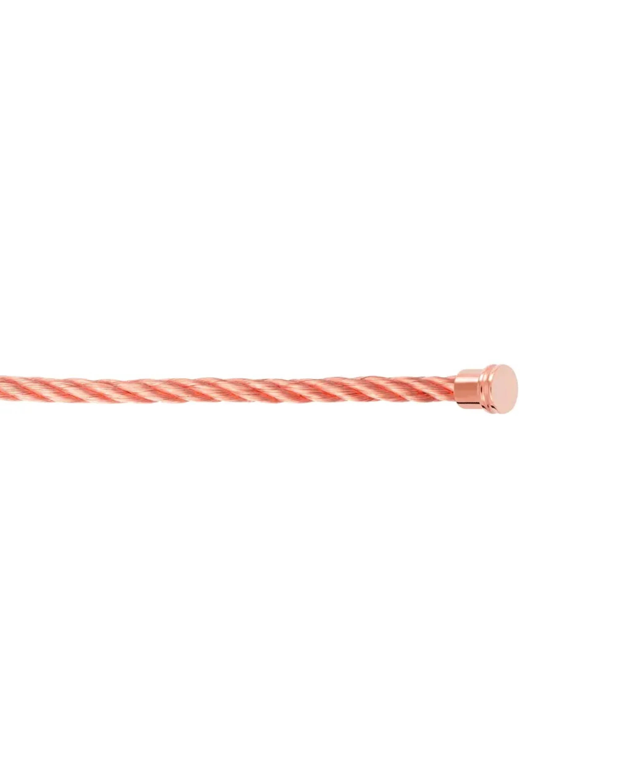 Este cable Fred Force 10 de modelo mediano representa el lujo absoluto, fabricado íntegramente en oro rosa de 18 quilates. Su diseño trenzado reinterpreta el icónico estilo náutico con una elegancia superior y un brillo cálido inigualable. Una pieza unisex, sofisticada y atemporal, diseñada para combinarse con cualquier hebilla de la colección.