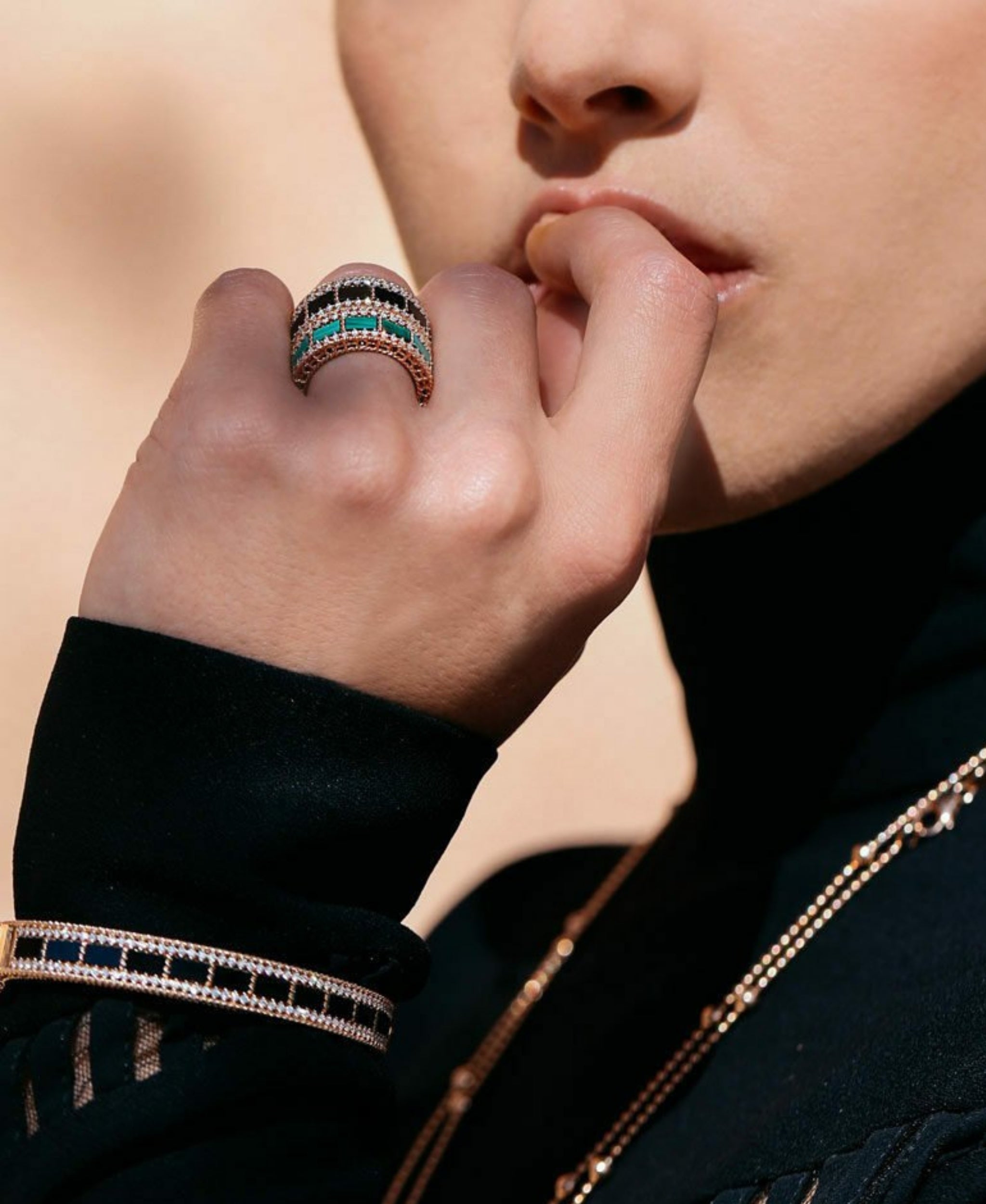 Un regalo especial de alto valor. Esta pulsera Art Decó de Roberto Coin es una pieza única, donde la vibrante malaquita y el oro rosa de 18kt se fusionan con diamantes. Una creación hecha a mano que exalta la máxima artesanía y atención al detalle.