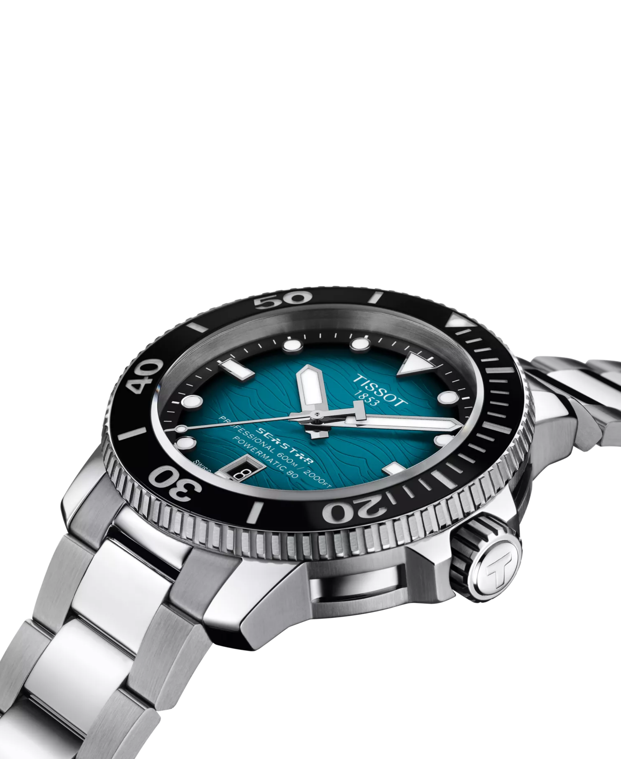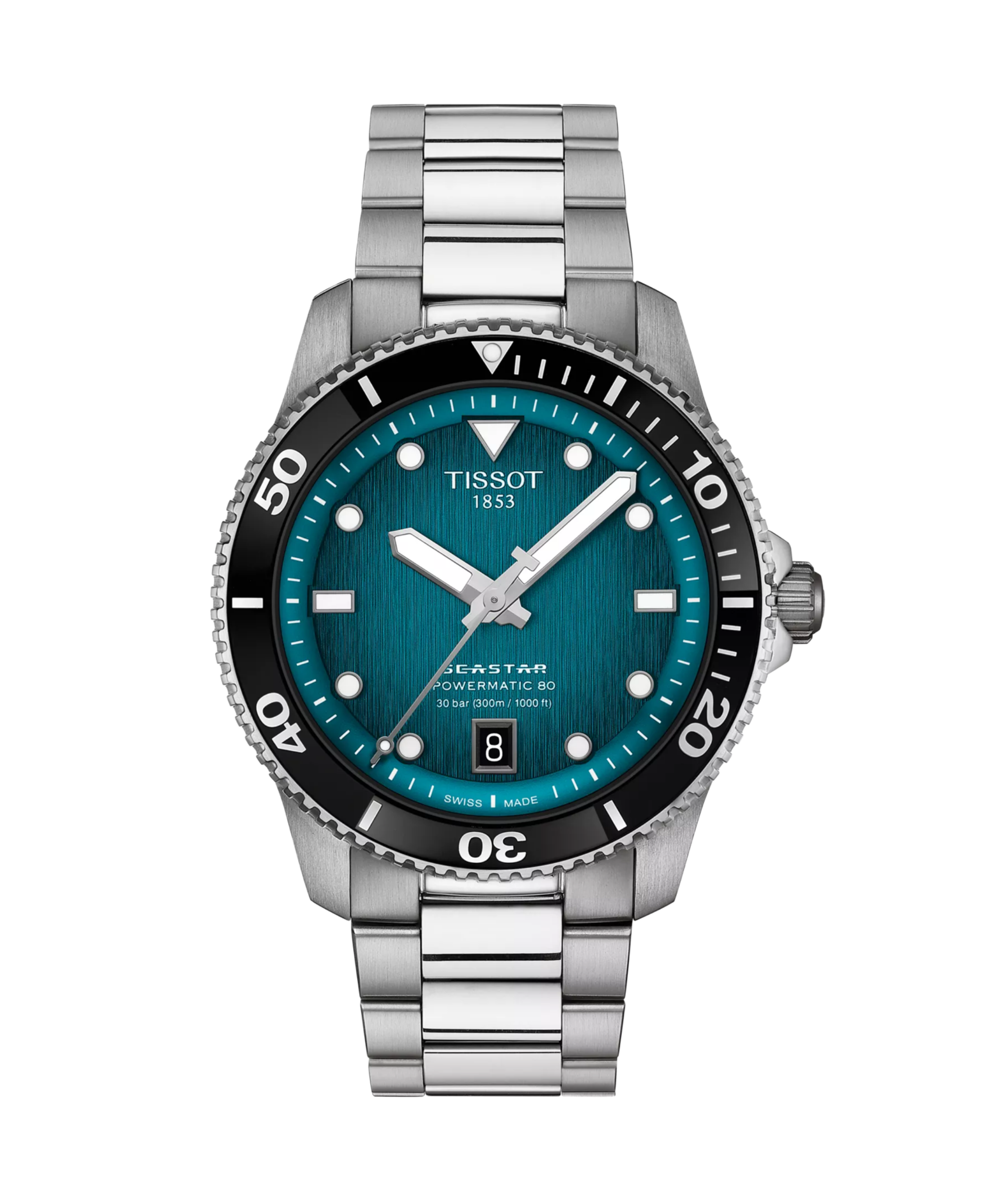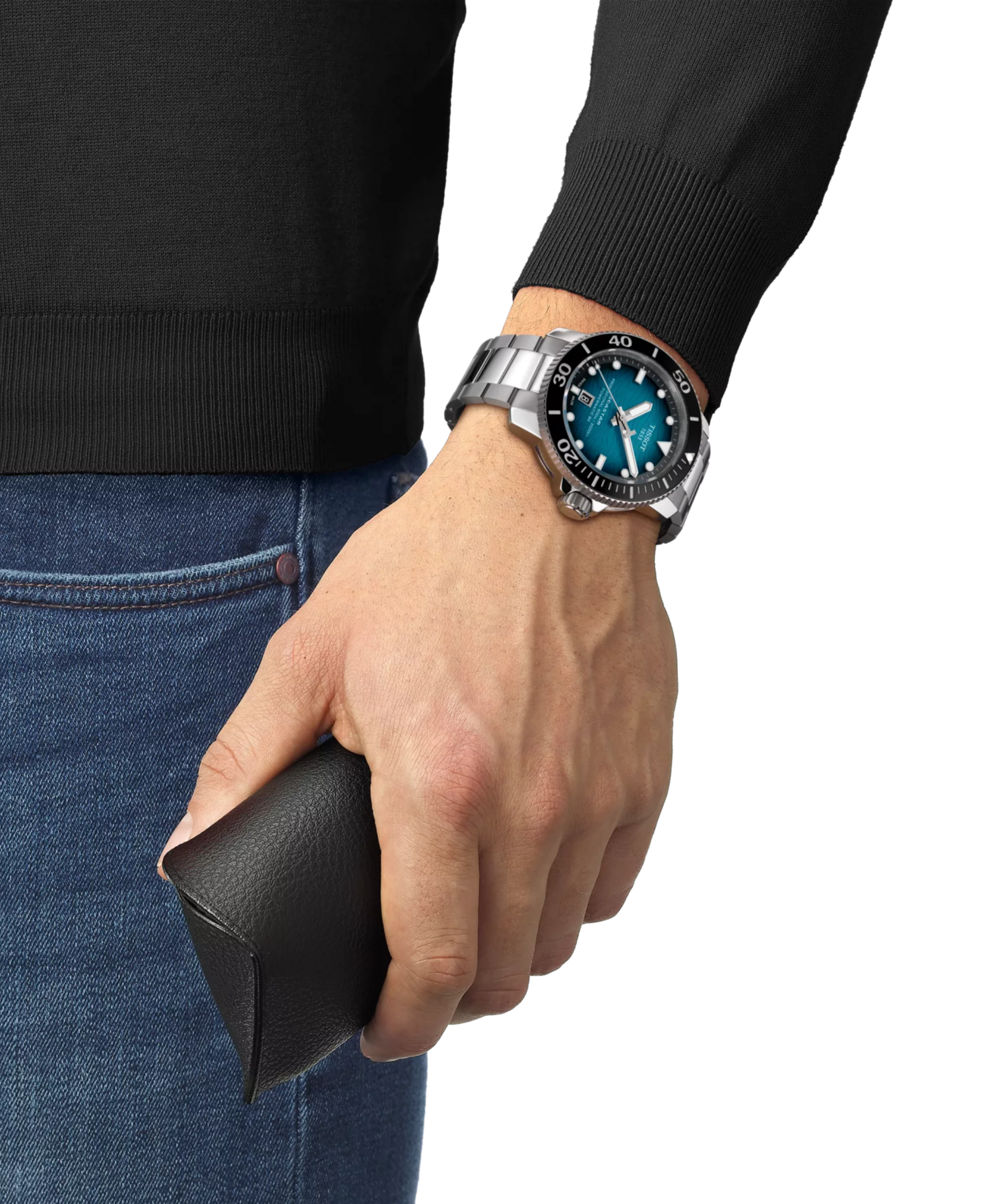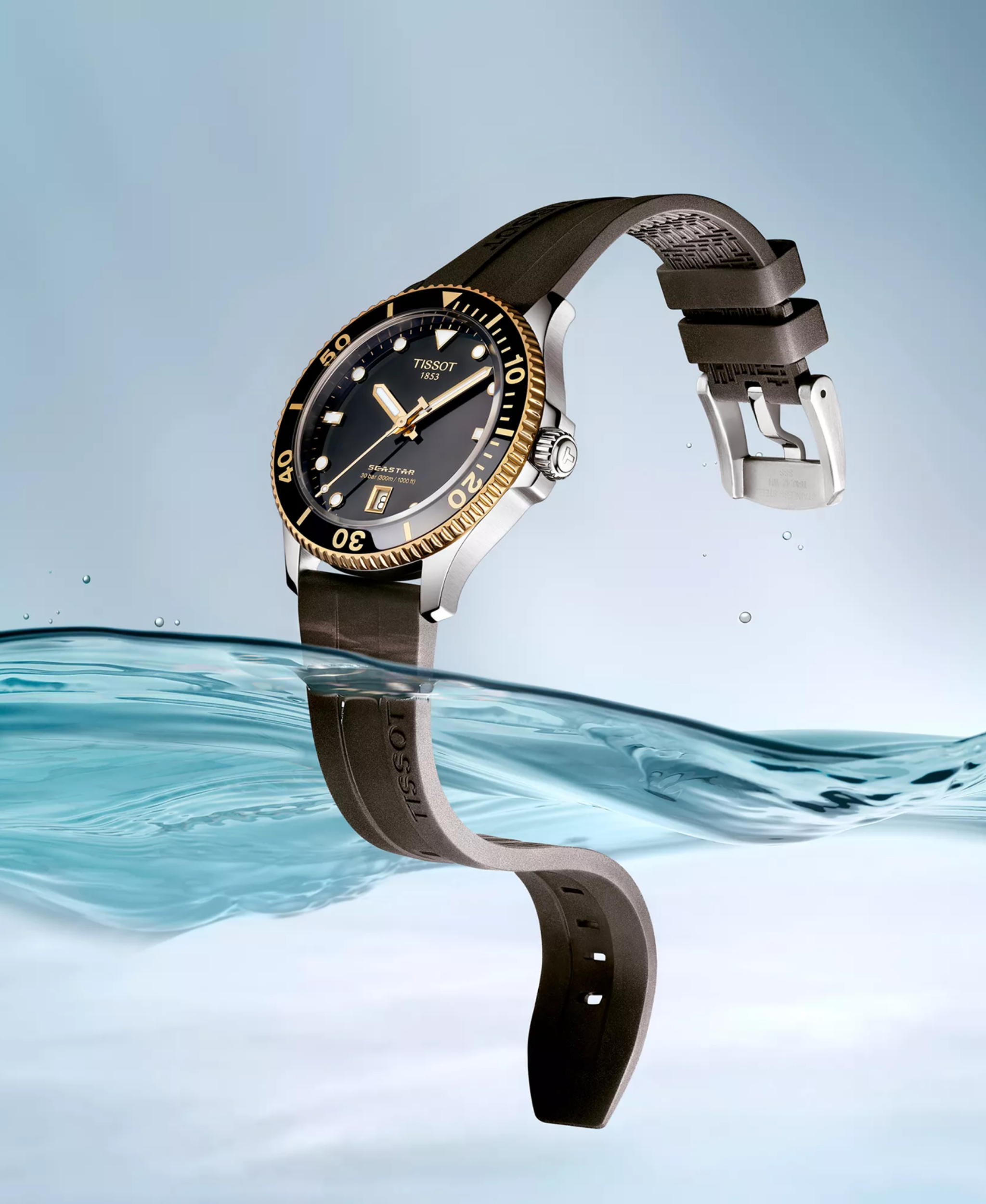 La colección Tissot Seastar es el referente de buceo de la marca, fusionando estilo deportivo y alta resistencia. Ofrece hermeticidad hasta 300m (30 bar), bisel cerámico unidireccional y el movimiento Powermatic 80 con espiral Nivachron™ antimagnética. Es un reloj robusto y luminoso, ideal tanto para explorar el mar como para el uso diario.