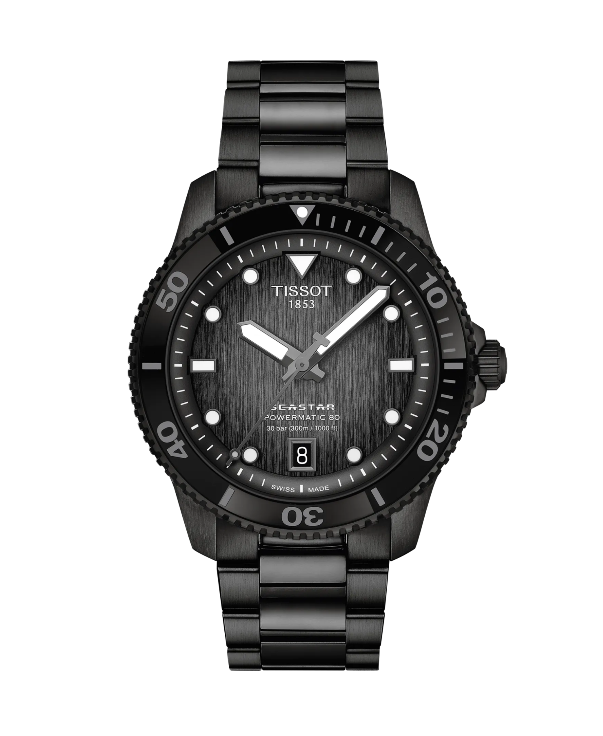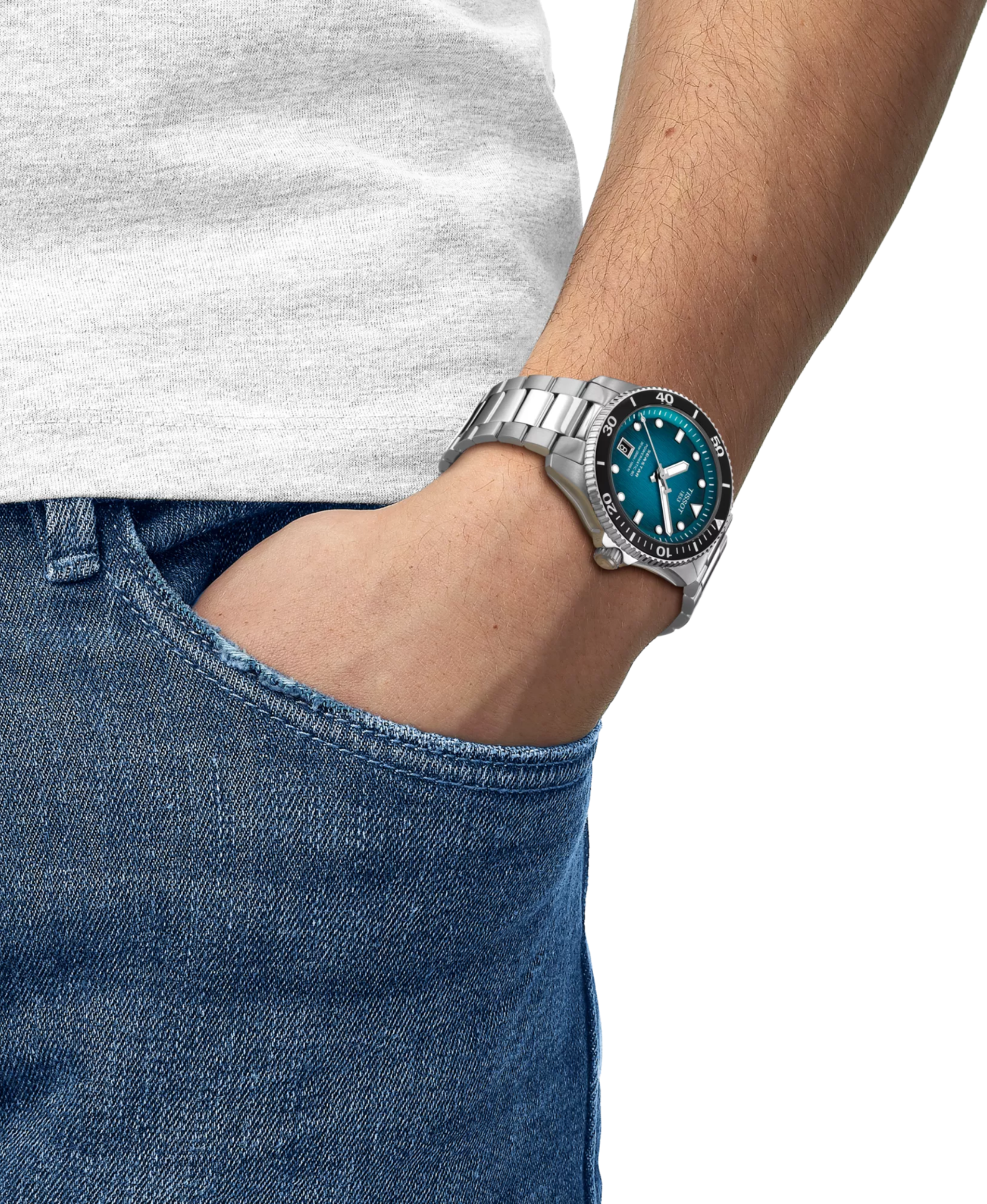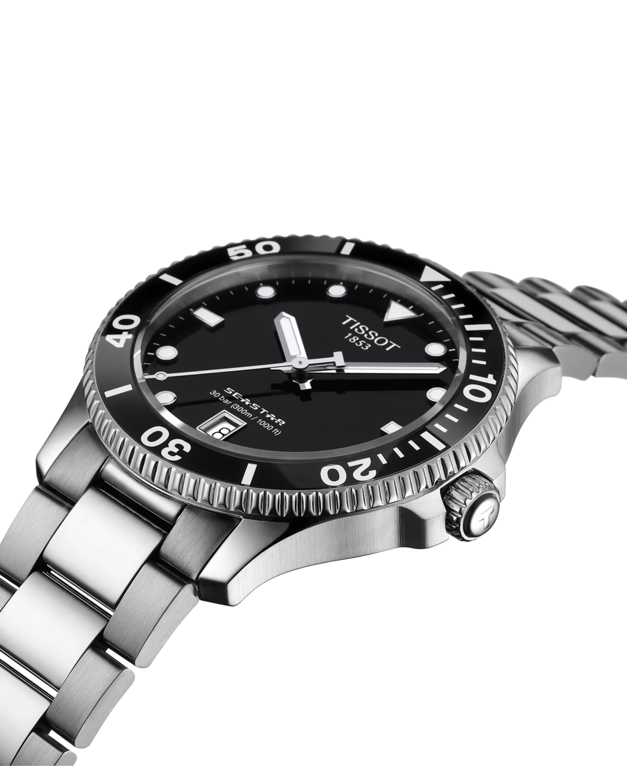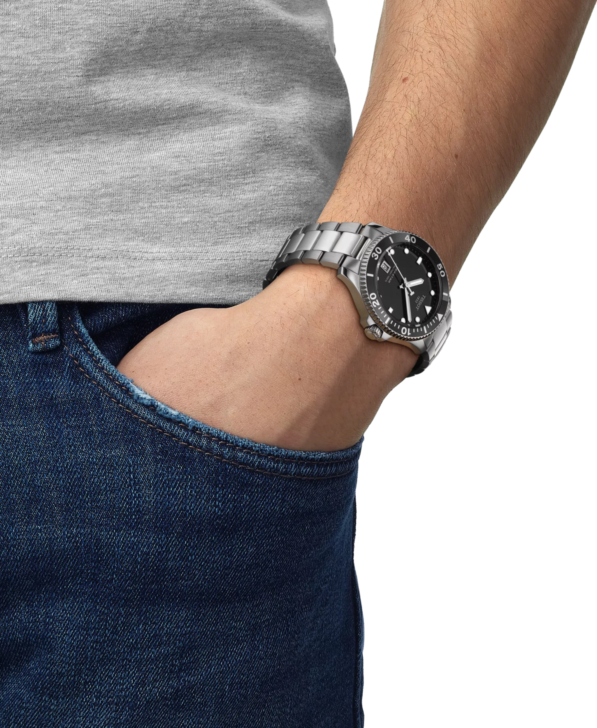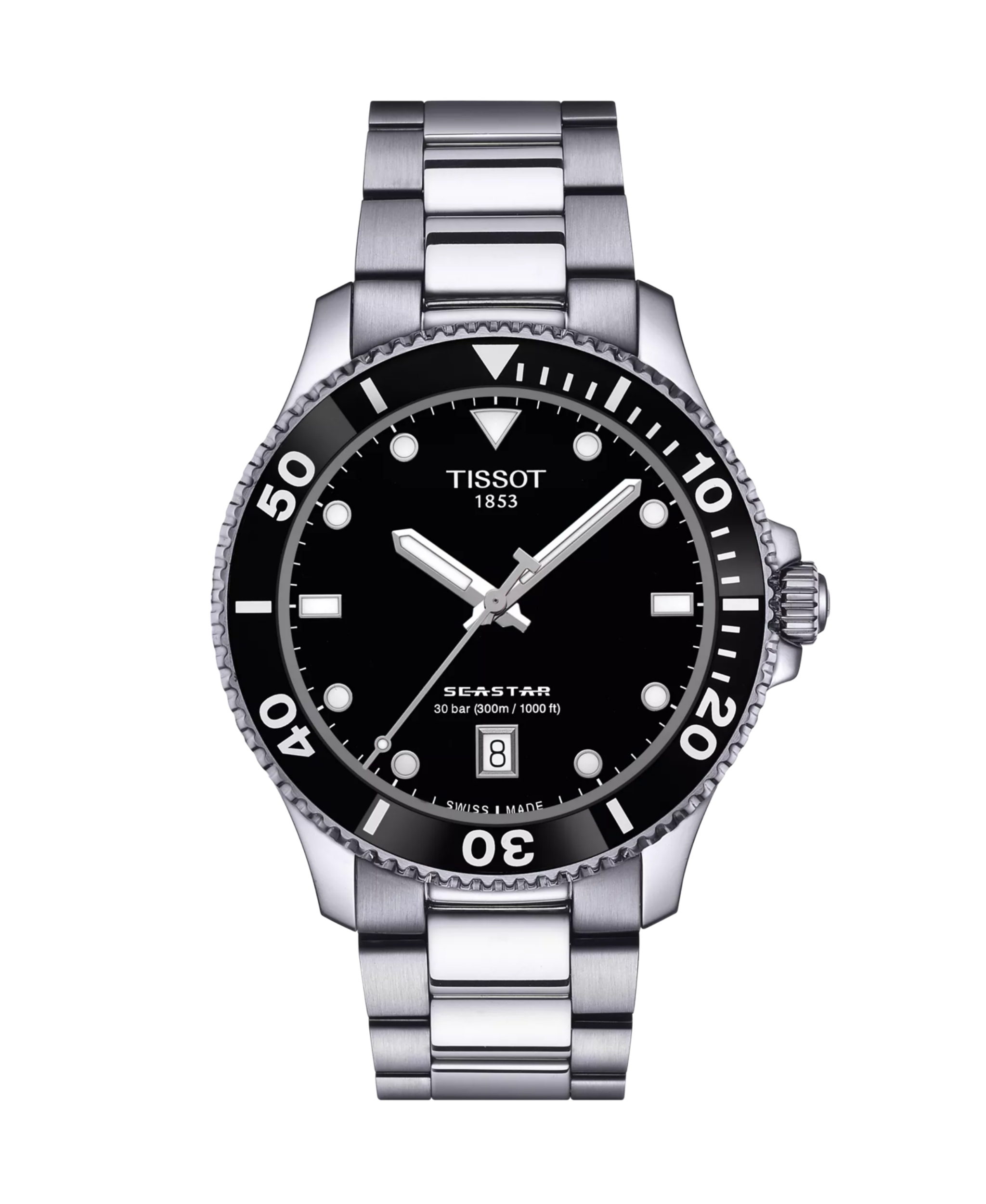 La colección Tissot Seastar es el referente de buceo de la marca, fusionando estilo deportivo y alta resistencia. Ofrece hermeticidad hasta 300m (30 bar), bisel cerámico unidireccional y el movimiento Powermatic 80 con espiral Nivachron™ antimagnética. Es un reloj robusto y luminoso, ideal tanto para explorar el mar como para el uso diario.