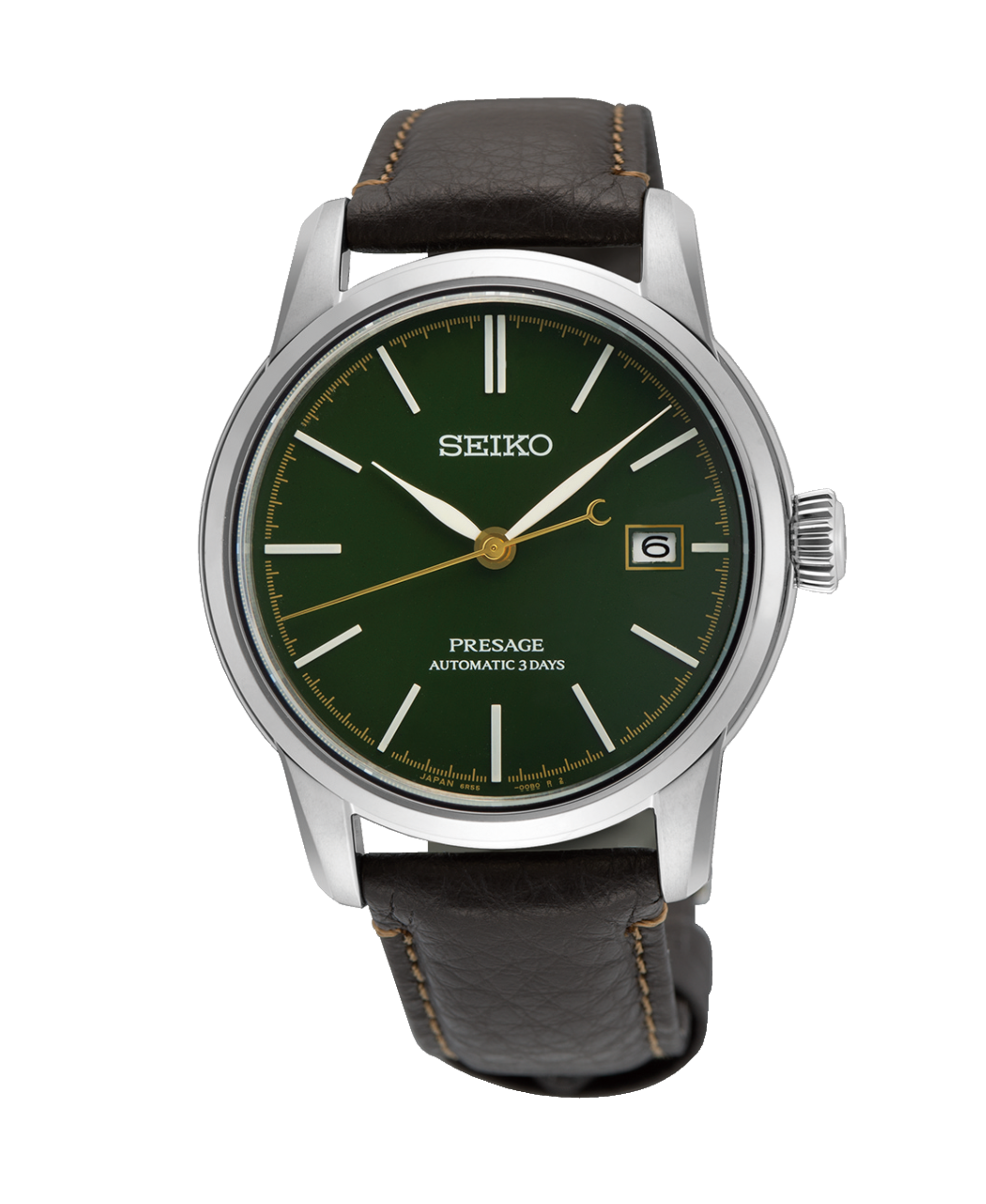 Reloj de vestir automático Calibre 6R55 con 72h de reserva. Esfera artesanal de Laca Urushi verde (40.2mm), inspirada en jardines japoneses. Cristal de zafiro de doble curvatura y 10 bares. Máxima elegancia.