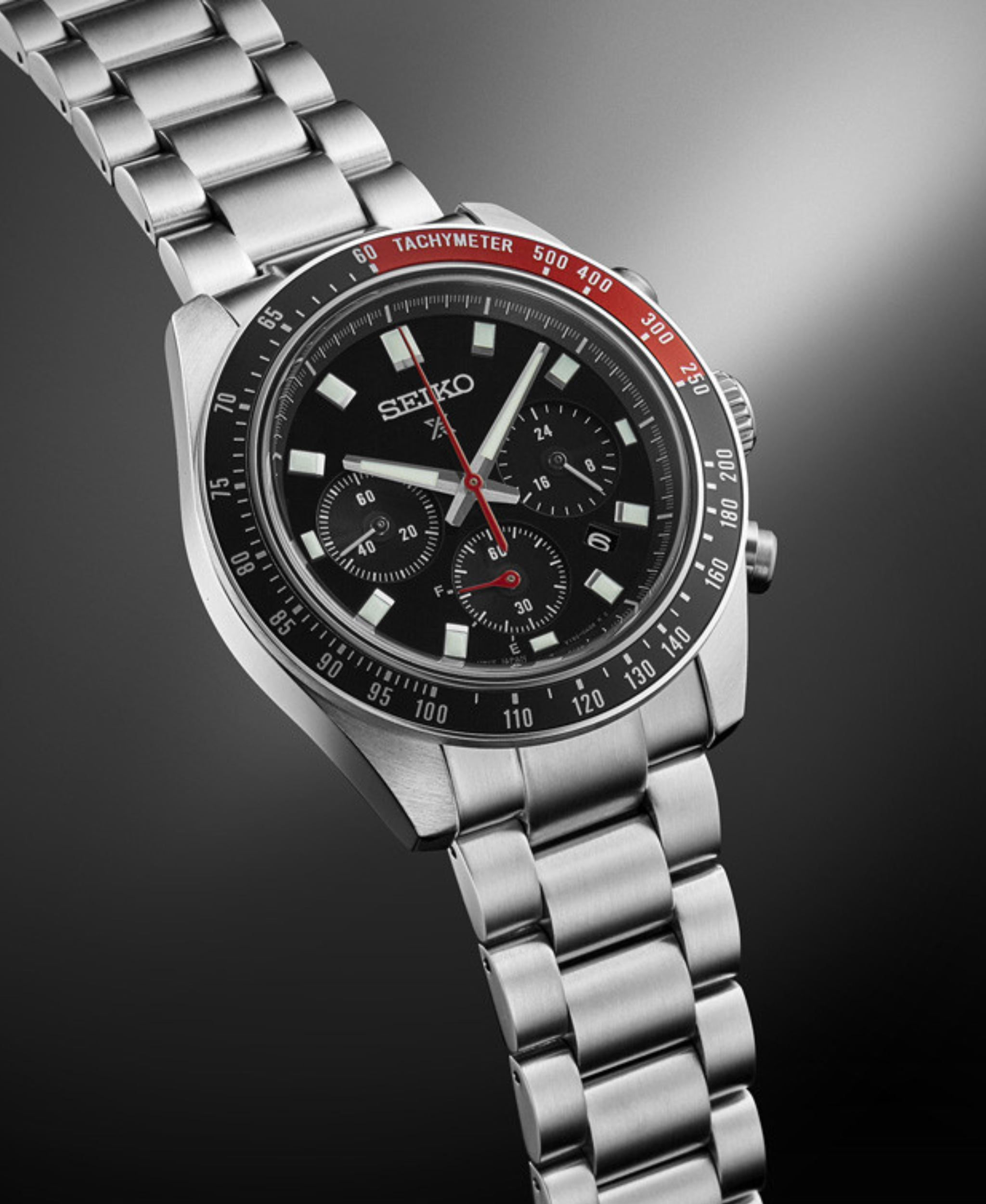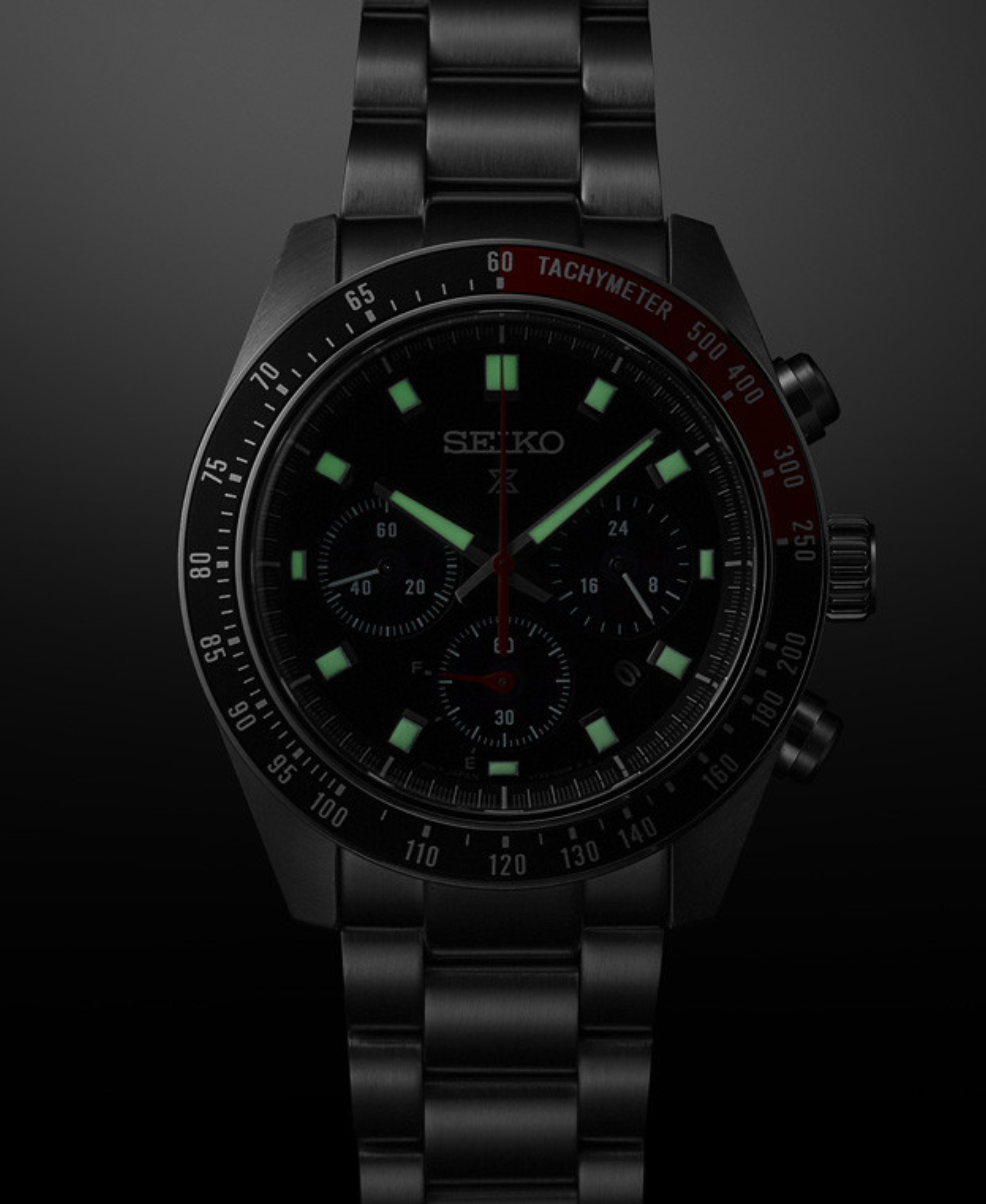 Máxima exactitud sin necesidad de cambios de pila, gracias a su avanzada tecnología de carga solar. Este modelo hereda el espíritu de los cronómetros de precisión de Seiko de la década de los 60, presentando una esfera negra con acabado mate que evita reflejos innecesarios. Las tres subesferas del cronógrafo están estratégicamente situadas para ofrecer una lectura clara de los tiempos medidos, mientras que el segundero del cronometraje destaca en la parte central.