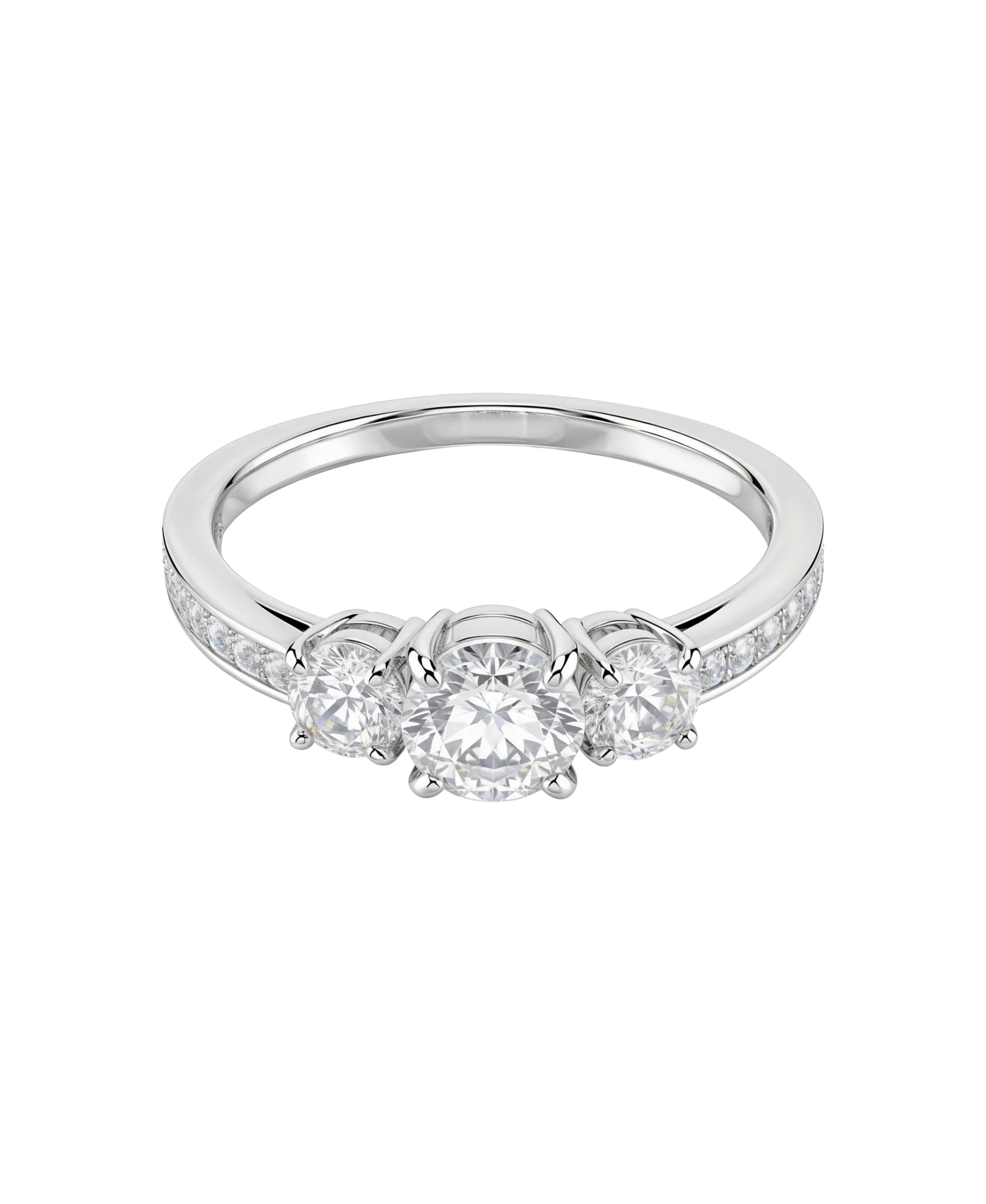 Pensada para acompañarte en cualquier ocasión, la familia Stilla Attract encarna una elegancia sencilla y atemporal. Este clásico anillo deslumbra con cristales transparentes y un trío de Swarovski Zirconia de talla precisa, realzados por un luminoso acabado en tono plateado.