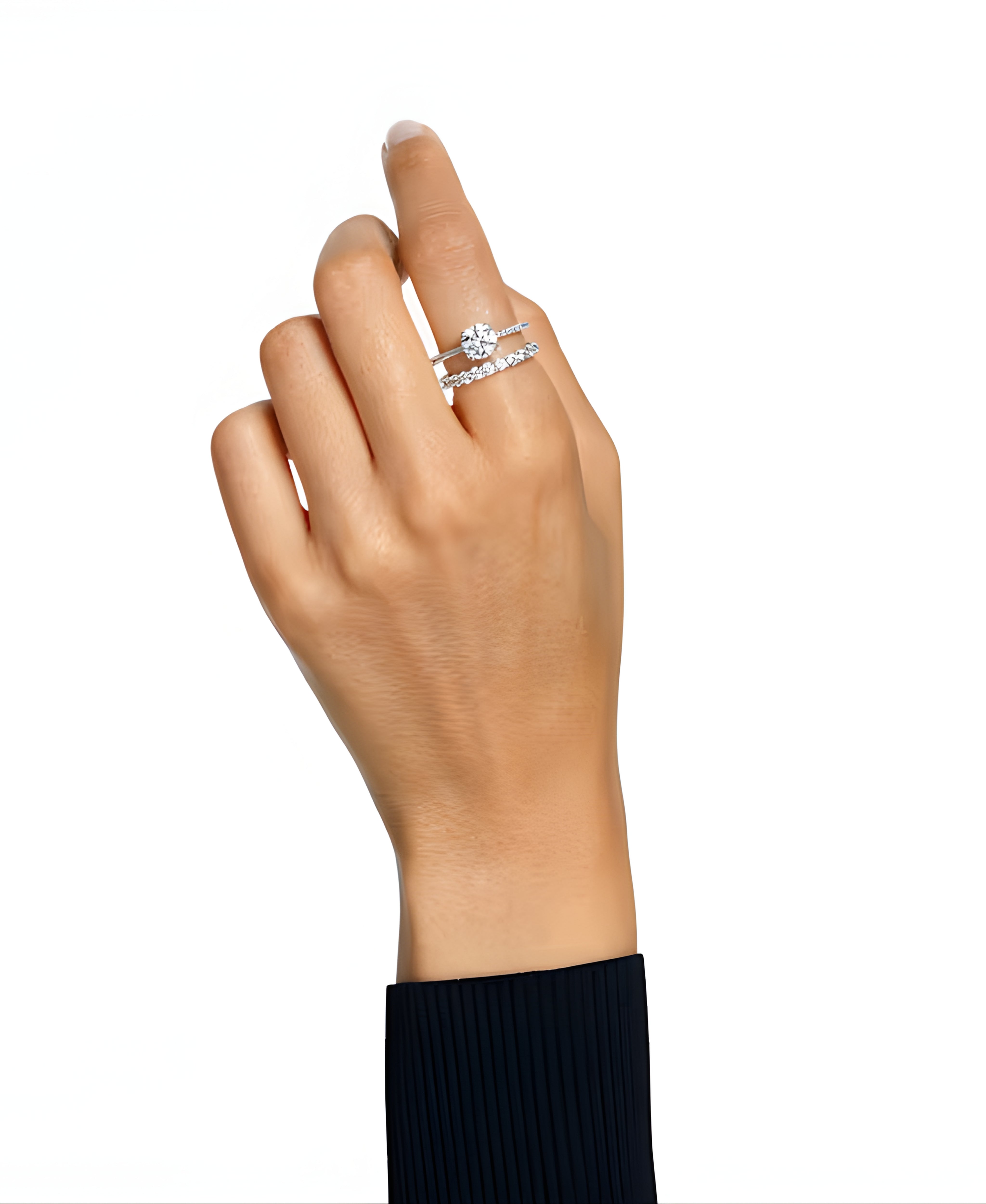 Realza tus looks de diario con este conjunto de anillos bañados en rodio de la familia Stilla. Cada pieza se inspira en técnicas de joyería fina: uno de los anillos brilla con piedras transparentes de talla princesa y adornos en pavé a lo largo de todo el diseño, mientras que el otro cuenta con una hilera de relucientes piedras alrededor de la banda. El regalo perfecto para ti o para alguien especial.