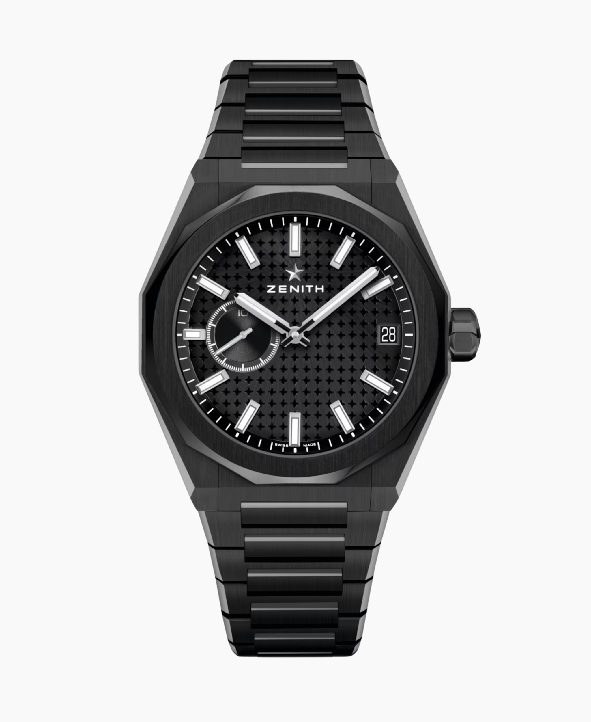 Zenith Defy Skyline es la visión deportiva de alta frecuencia en 41 mm. Su caja octogonal de cerámica negra combina dureza y ligereza. Impulsado por el El Primero 3620, ofrece el indicador de 1/10 de segundo. Su diseño full black con patrón de estrellas en la esfera lo hace imponente y moderno.