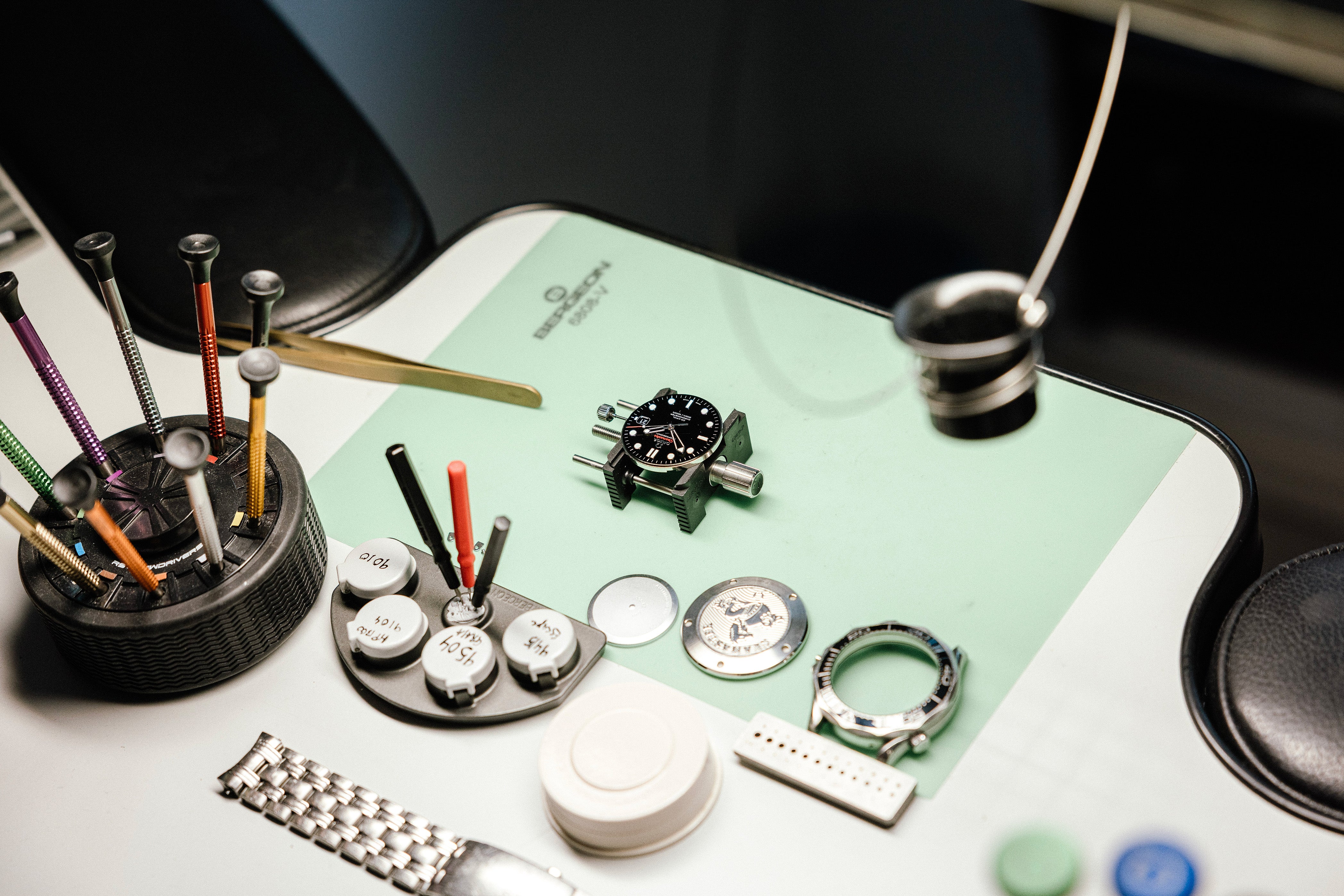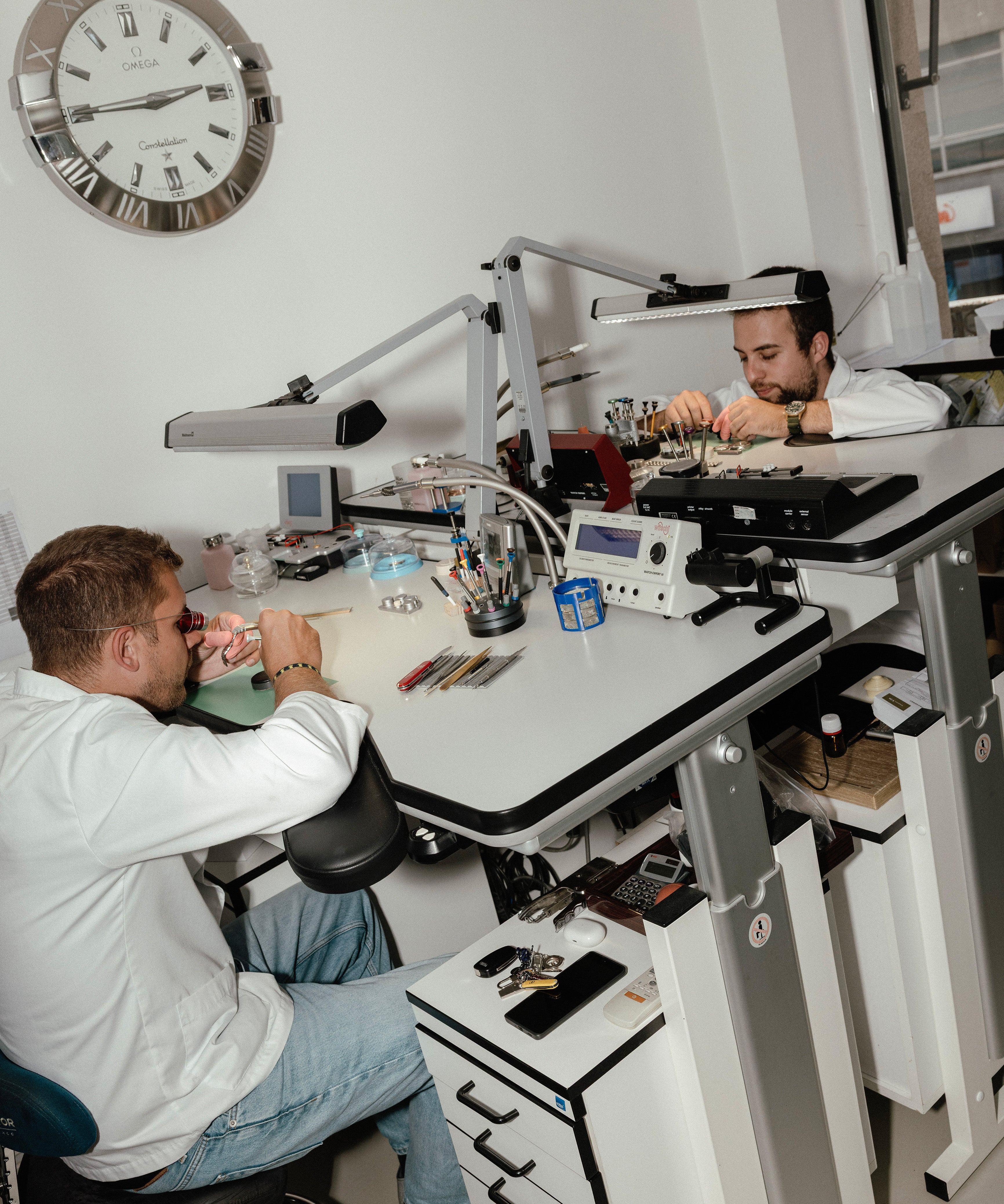 Nuestro taller in-house, acreditado oficialmente por las firmas relojeras más prestigiosas de Suiza, está dirigido por relojeros y artesanos formados y actualizados periódicamente por profesionales de las manufacturas. Así, garantizamos que cada proceso cumpla con las exigencias de calidad de las casas que distribuimos.