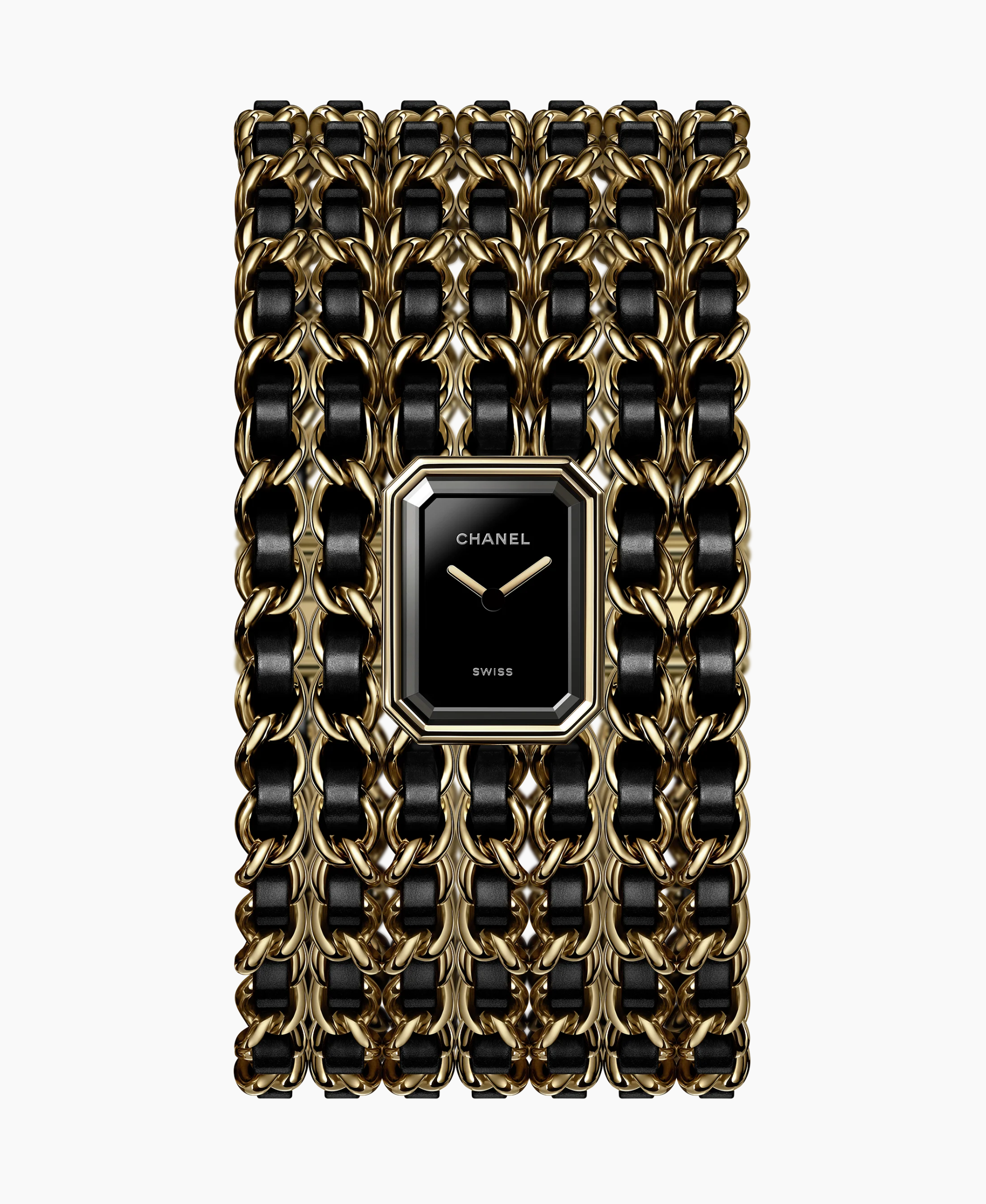 Chanel Première rinde homenaje al icónico diseño de 1987. Su pequeña caja octogonal (19,7 x 15,2 mm) en Acero pulido se integra perfectamente con un brazalete articulado de eslabones. Con esfera lacada en negro, este reloj-joya captura la elegancia atemporal de la Place Vendôme, ofreciendo un estilo minimalista y sofisticado.