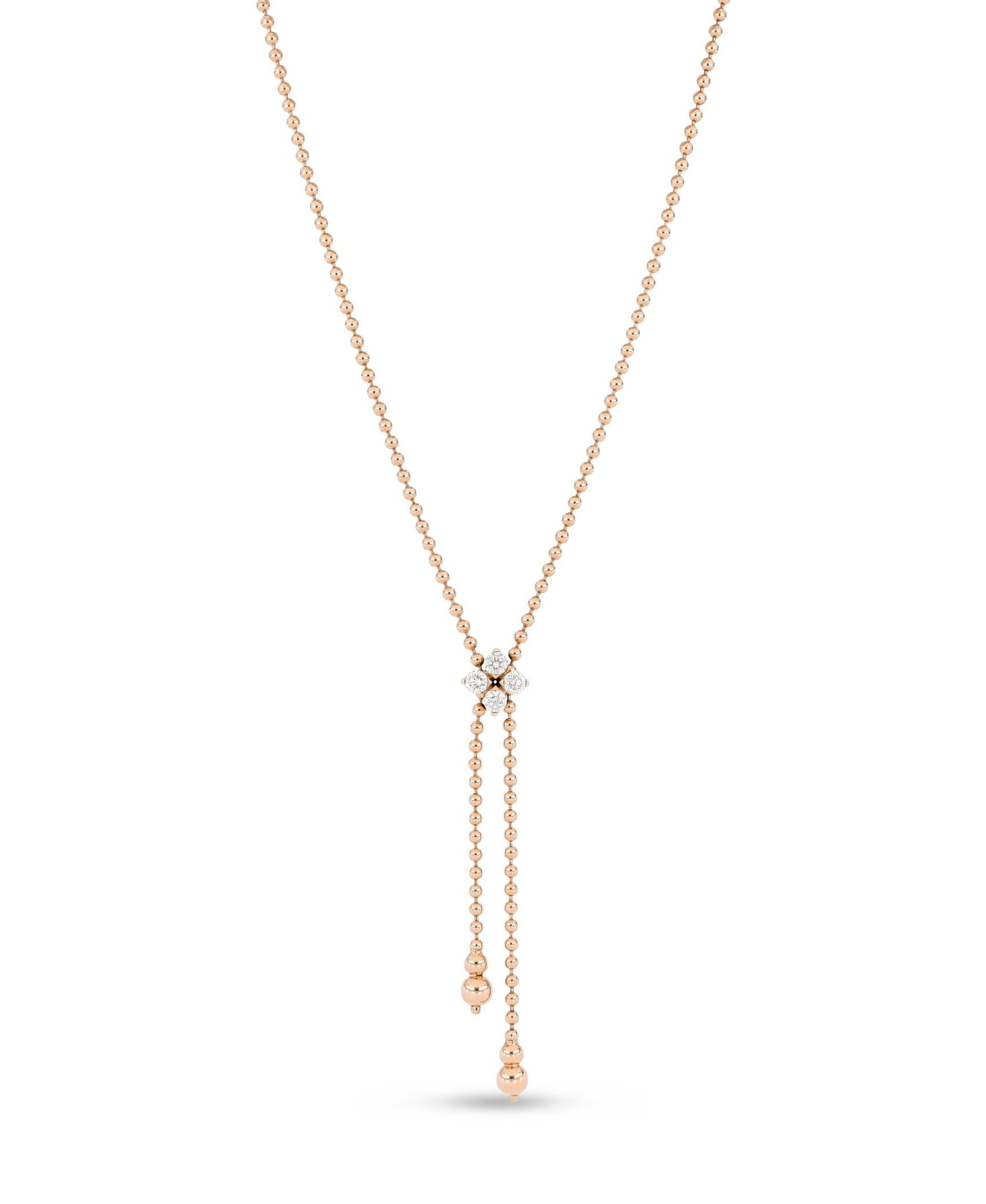 Define tu estilo. Este colgante Princess Flower de Alta Joyería, con diamantes resplandecientes y la esencia artesanal de Roberto Coin, es la pieza definitiva para elevar tu look. Lujo atemporal.