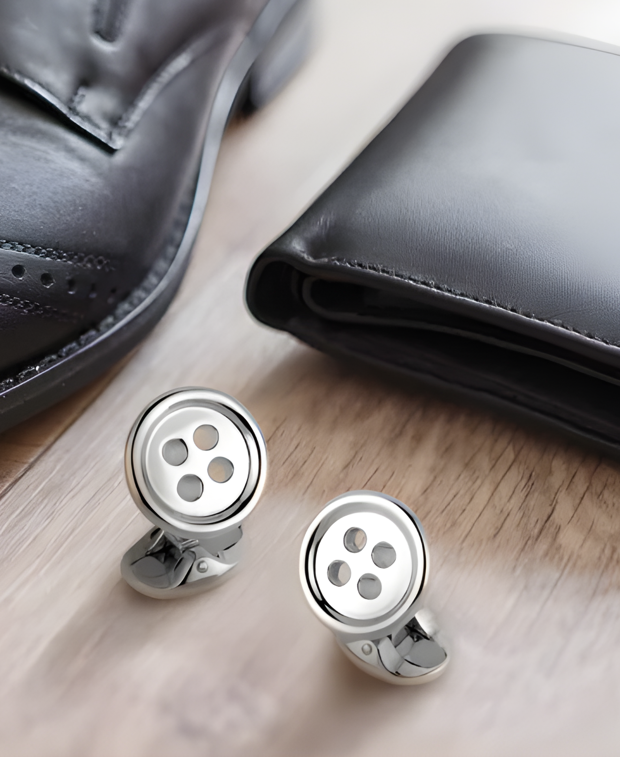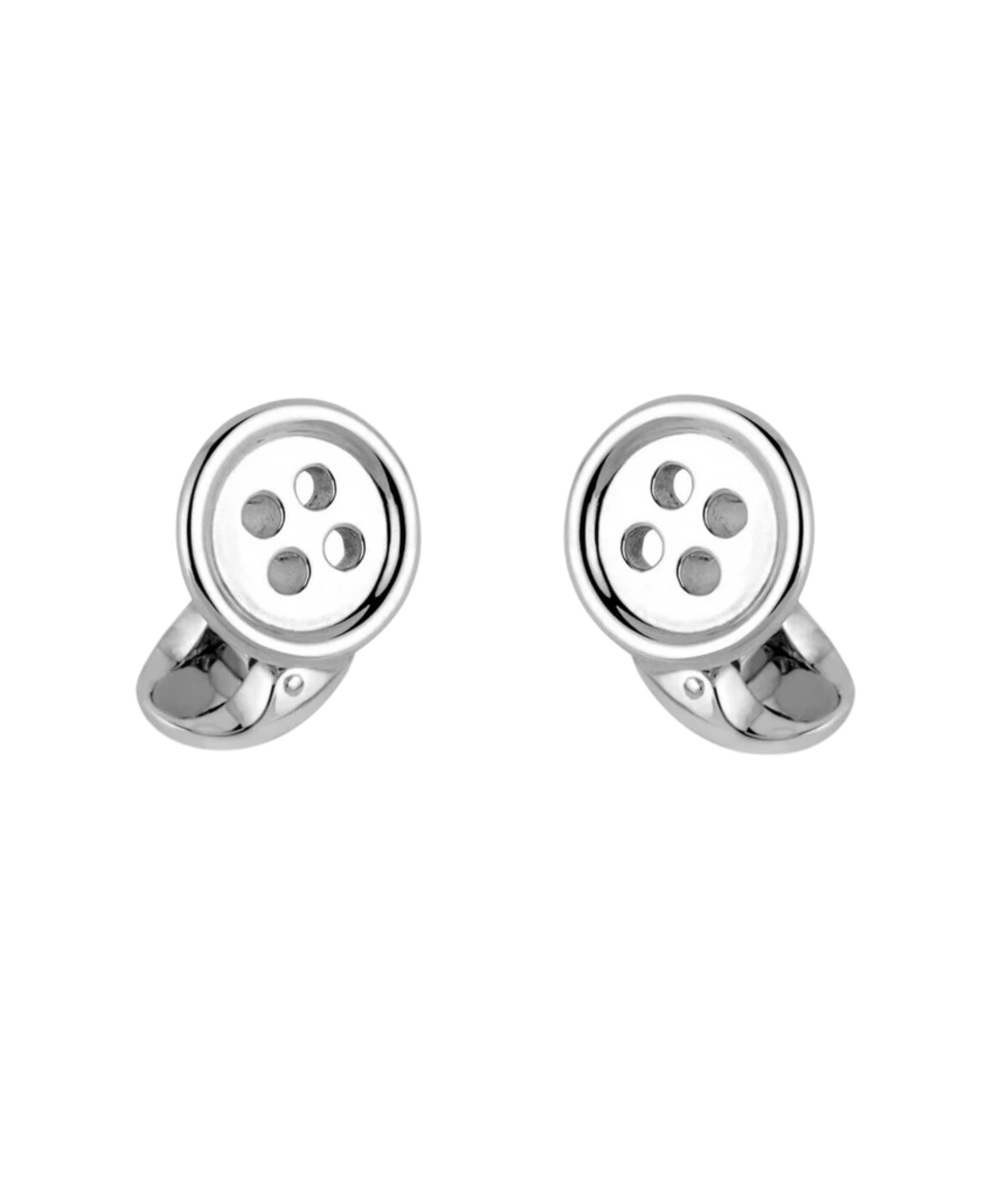 Fabricados íntegramente en plata de ley 925 maciza, presentan un diseño circular pulido con los característicos cuatro orificios centrales, simulando un botón de alta costura con una fidelidad asombrosa. Es la elección predilecta para el caballero que busca un estilo discreto, sofisticado y con un toque de ingenio sutil que rinde homenaje a los orígenes de la camisería fina.