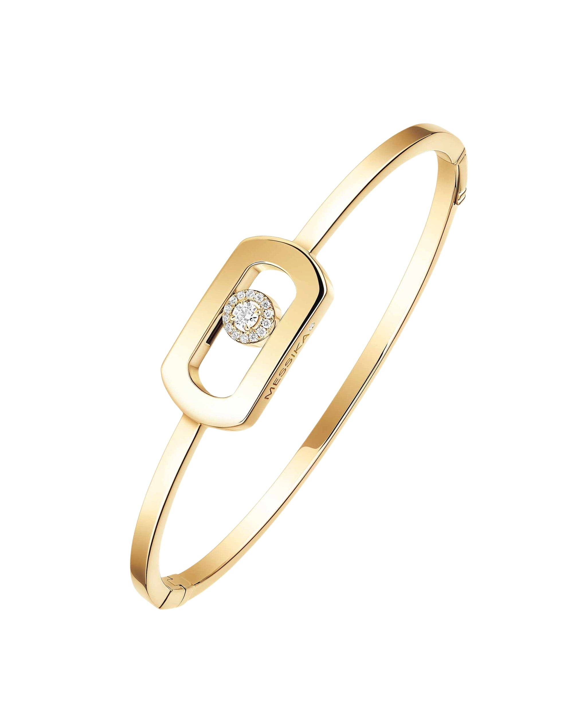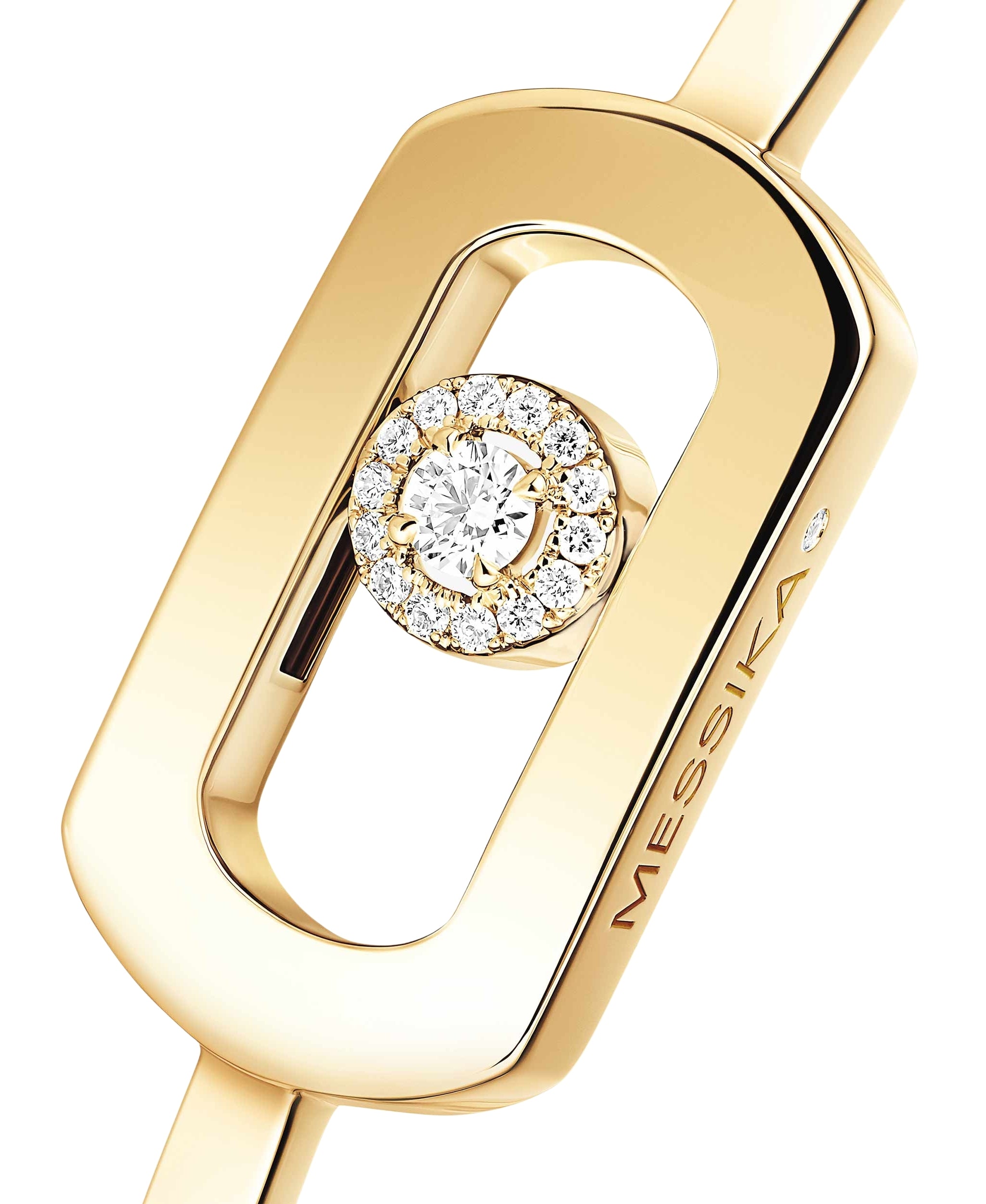 Redefine tu estilo personal con esta pulsera So Move. Esta esclava de alta joyería, forjada en oro amarillo, es un manifiesto de audacia. El icónico motivo Move, reimaginado en tamaño XXL y potenciado por un deslumbrante diamante móvil con halo pavé, es la pieza de declaración definitiva. Completa tu look combinándola con otras piezas de la colección SO MOVE.